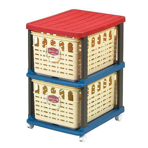 2段バスケット 幅45×奥行58×高さ72cm キャスター付き 収納バスケット