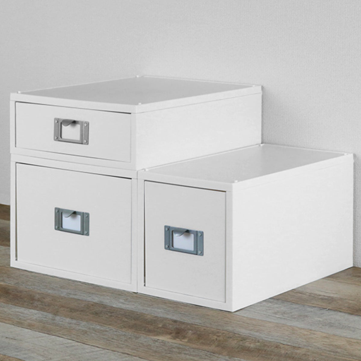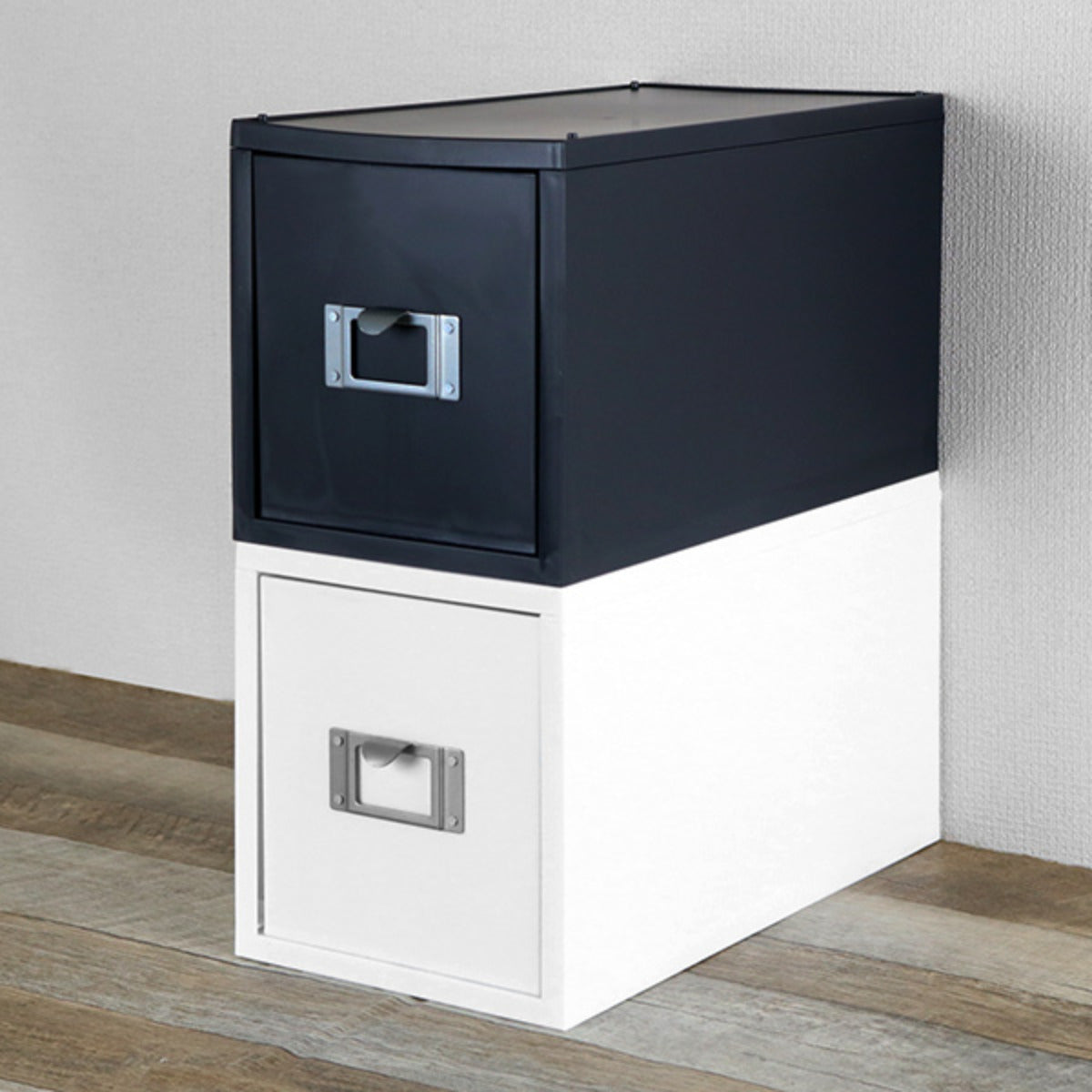 ファイルユニットは、同商品同士でスタッキングが可能です。CDなどの収納物が増えたときも、スタッキングして収納場所を増やしてスッキリ収納できます。