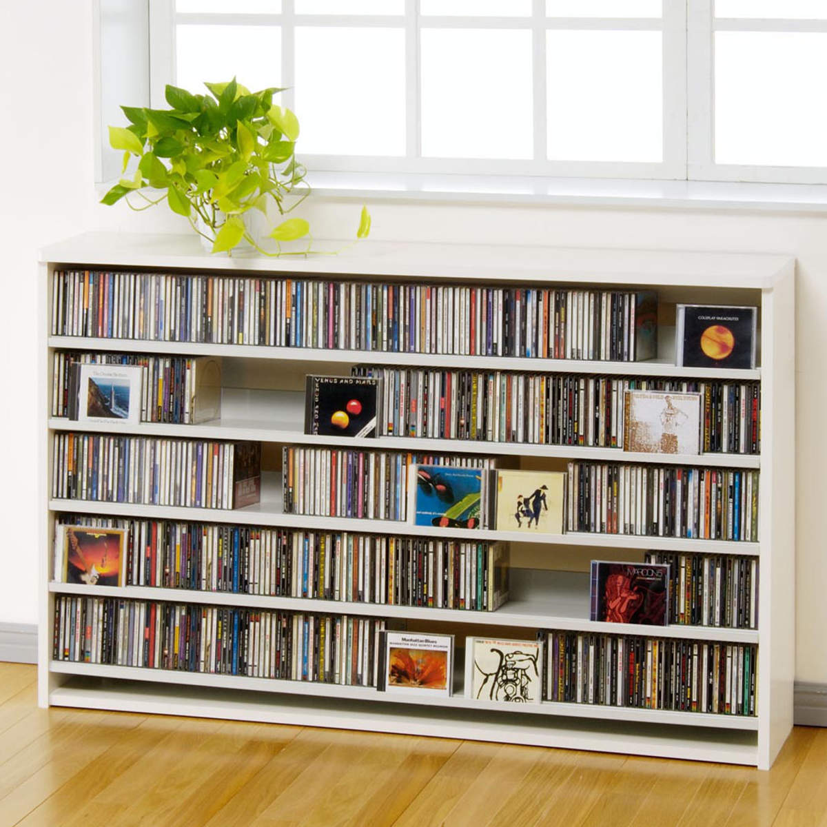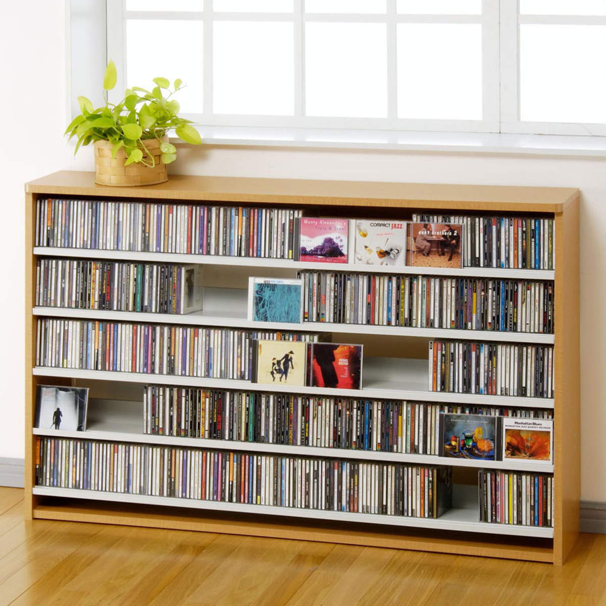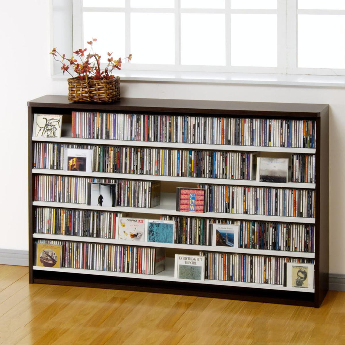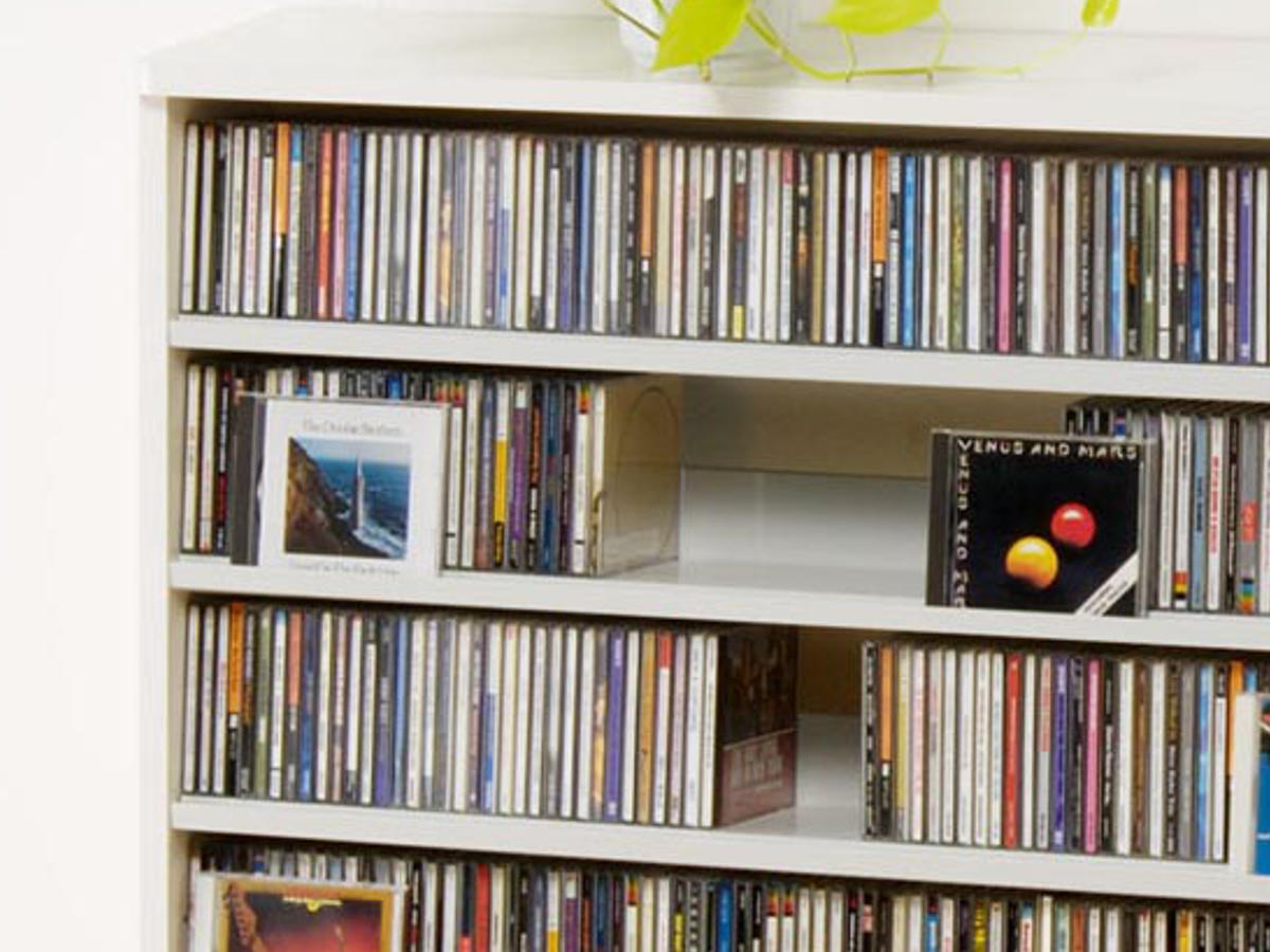 棚板前側にCDを差し込むことのできる溝があるので、お気に入りのジャケットをディスプレイしながら収納できます。