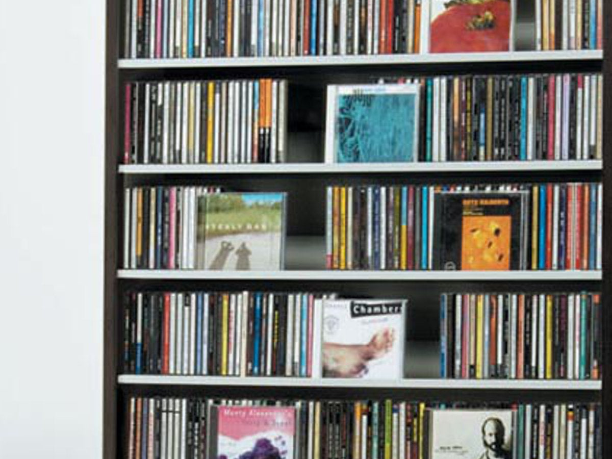 棚板前側にCDを差し込むことのできる溝があるので、お気に入りのジャケットをディスプレイしながら収納できます。