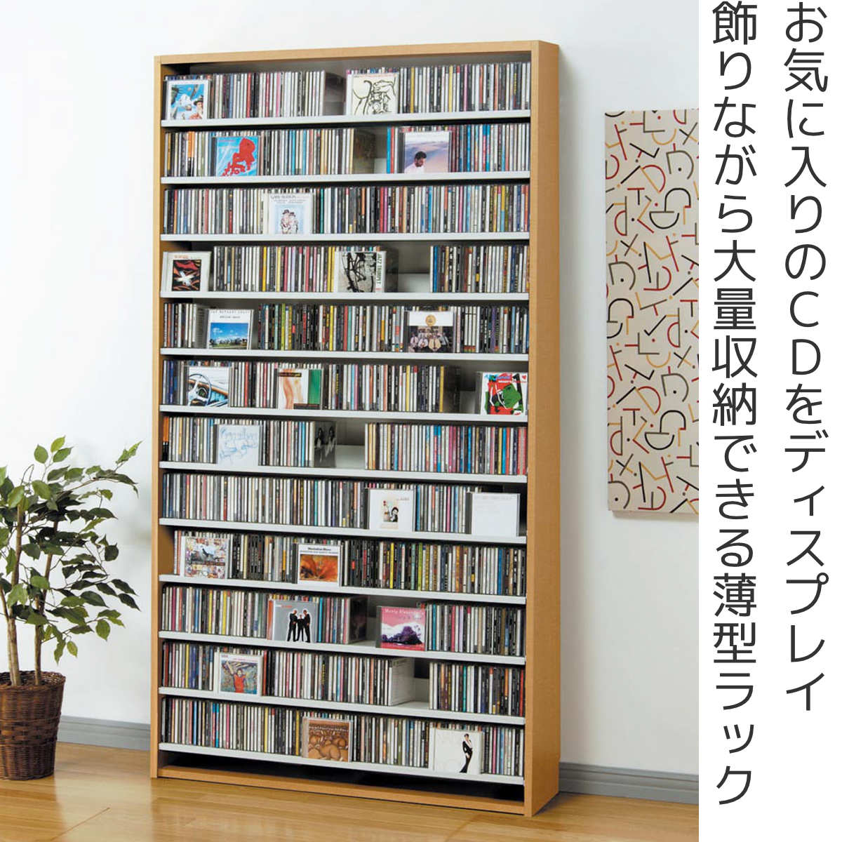 お部屋がすっきり片付く、収納力抜群の薄型ラックです。収納したいものに合わせて棚の位置を変えられるので、CDだけでなくDVDも収納することができます。お気に入りのジャケットを好きなだけディスプレイでき、コレクションをお楽しみいただけます。