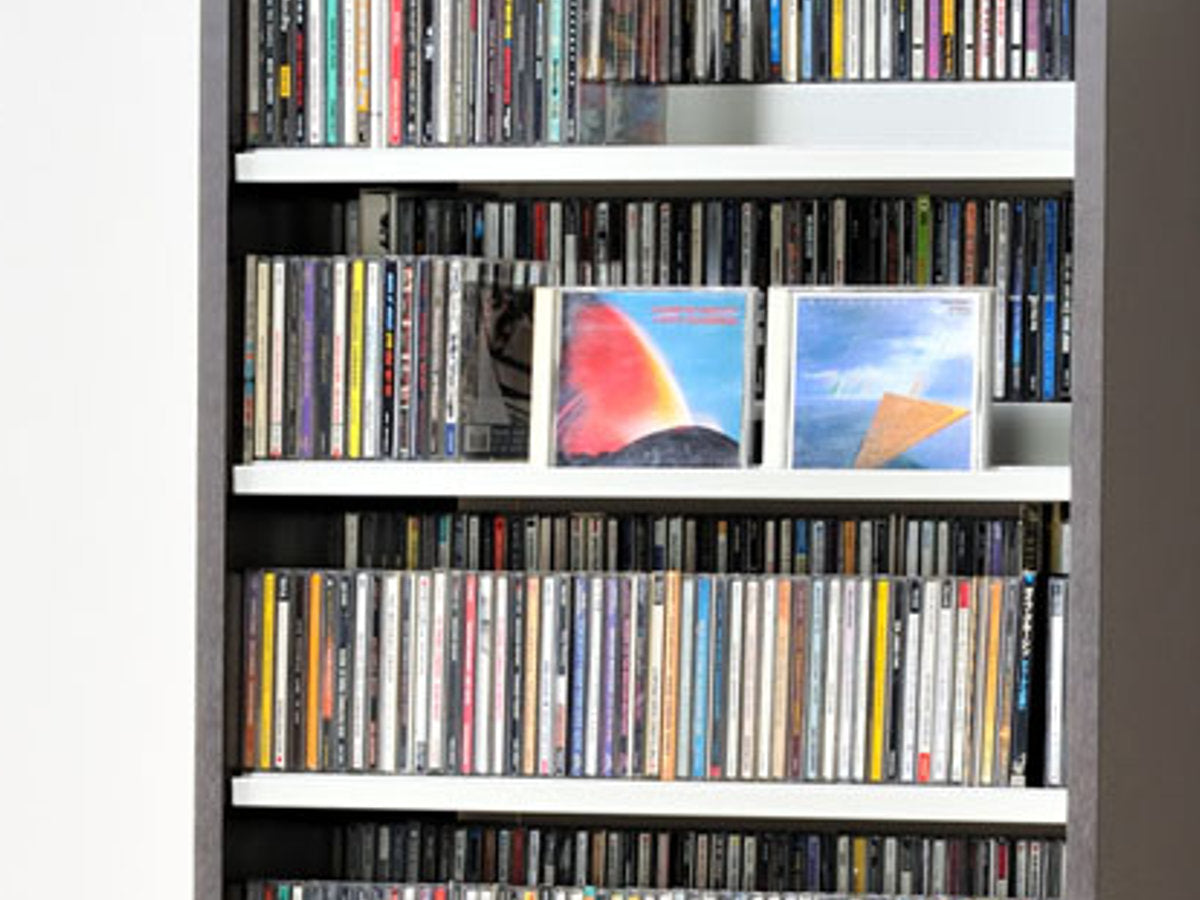 棚板前側にCDを差し込むことのできる溝があるので、お気に入りのジャケットをディスプレイしながら収納できます。前後2段式収納なので、省スペースでたっぷり収納できます。