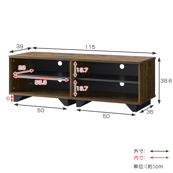 AVラック テレビボード オープンタイプ 分割式 インダストリアル調 幅115cm