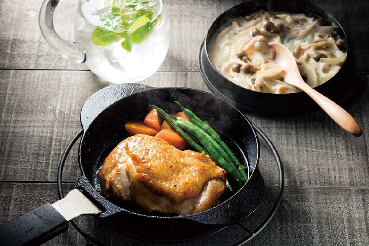 スキレットとは、厚手の鋳鉄製のフライパンのことで、一般的なステンレスやアルミ製に比べ、蓄熱性も高いので素材のおいしさを逃さず調理することができます。アヒージョやハンバーグ、デザートのパンケーキ調理にもおすすめなBBQなどのアウトドアユーズでも人気のアイテムです。