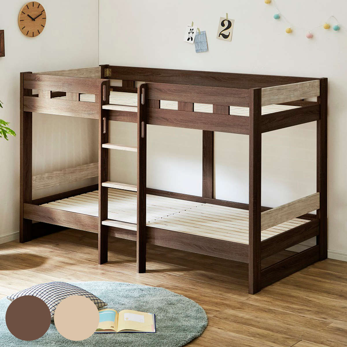 2段ベッド 木目調 すのこ はしご ツートンカラー