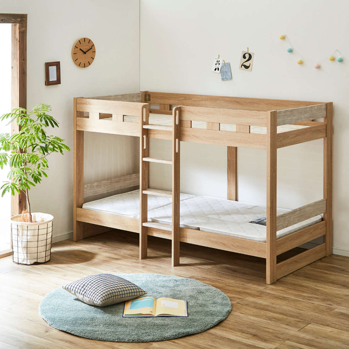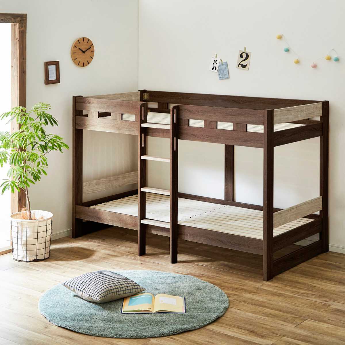 高さ137cmとロータイプなので、上段部分の布団の上げ下ろしも楽々な2段ベッドです。ナチュラルなツートンカラーがどんなお部屋にも馴染みやすく、シンプルで飽きのこないデザインです。