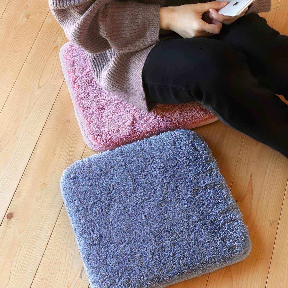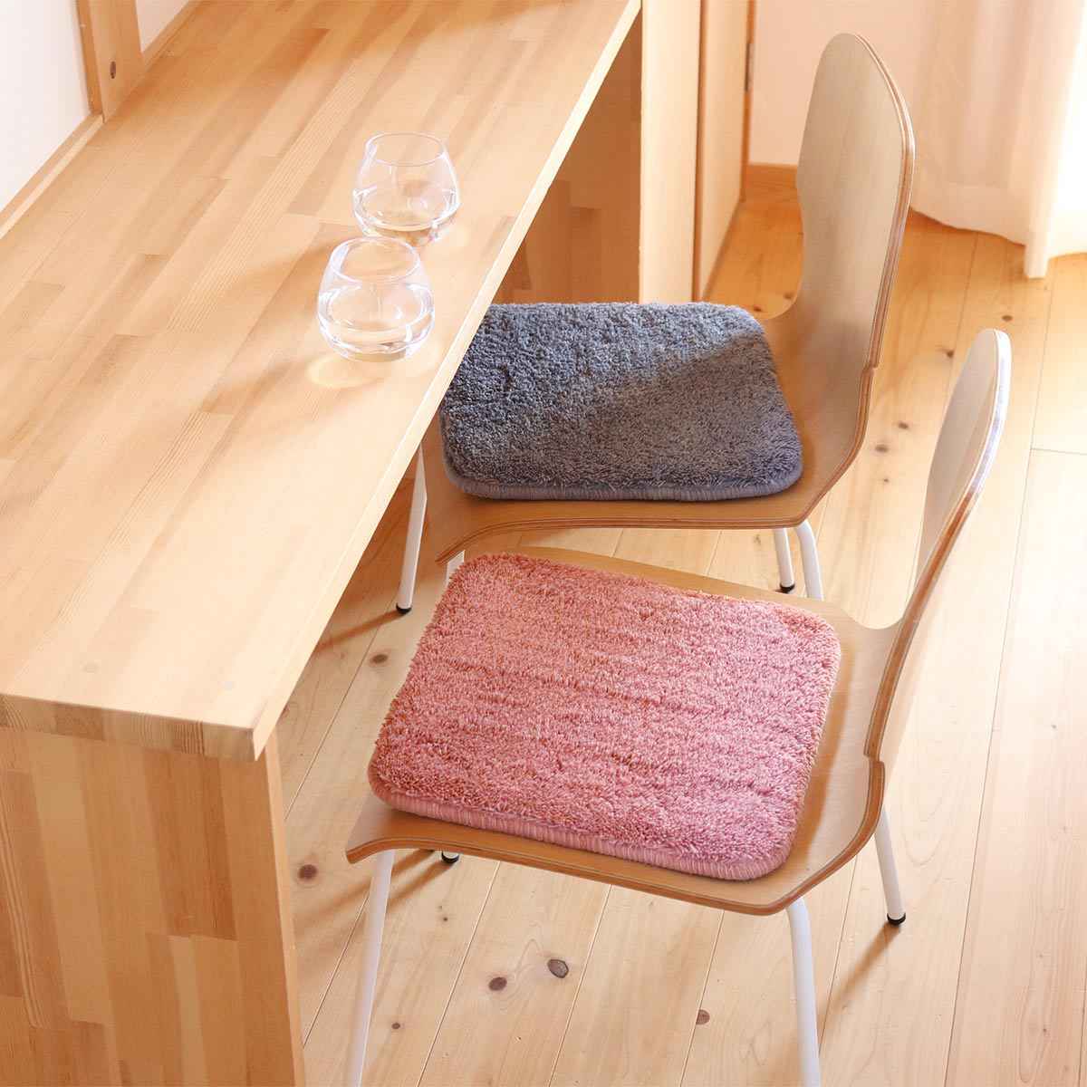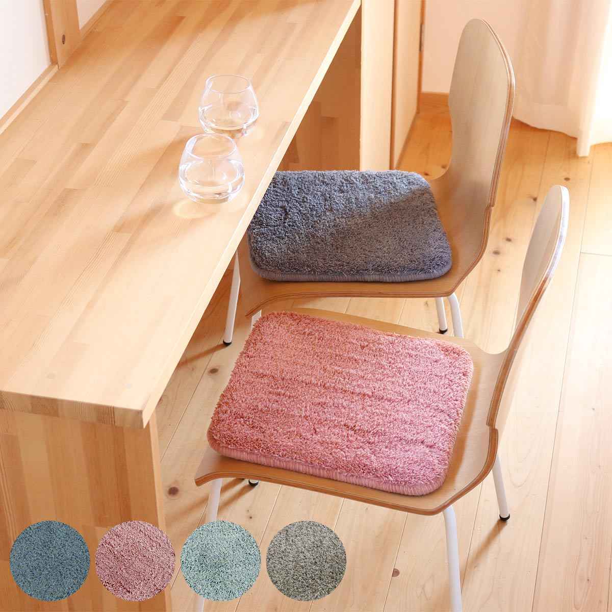 ふわふわのシャギーパイルが気持ちいい四角タイプのチェアパッドです。中材は安定した座り心地とクッション性のある低反発ウレタンを使用。毛足の長いパイル糸と低反発ウレタンで、贅沢な座り心地です。