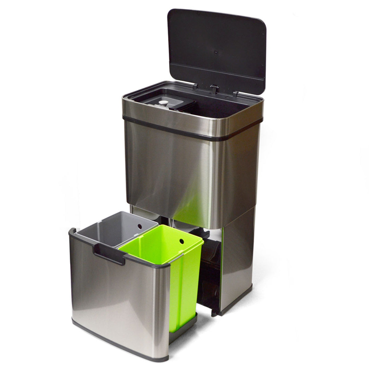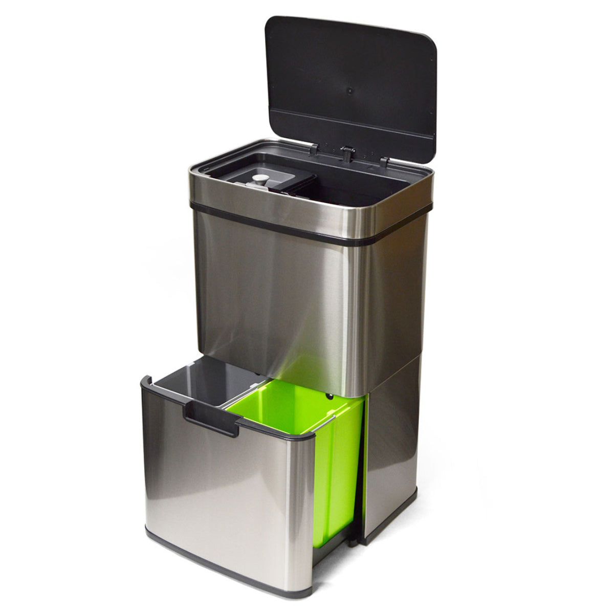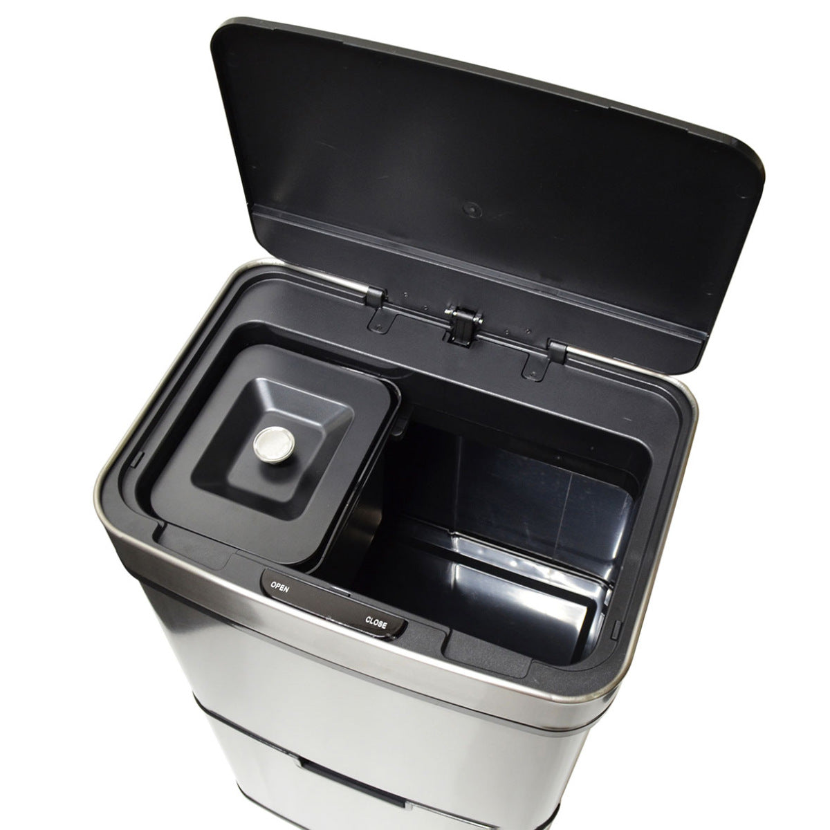 センサーで自動開閉、1台で4分別できるステンレス製ゴミ箱62L