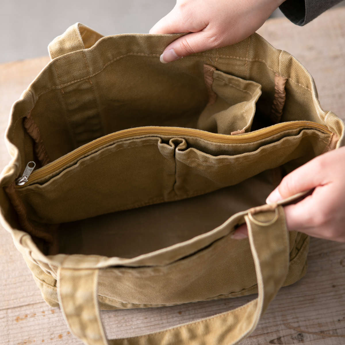 仕切り付きで、自然に整理整頓ができ、何がどこにあるか一目で分かるから必要なものがサッと取り出せます。内ポケットには小物、ファスナー付きポケットには鍵や貴重品と分けて収納できます。ボトル立てもあり、バッグ外側にもポケットが付いているので細かなものがバッグの中でどこにあるか分からなくなることもありません。