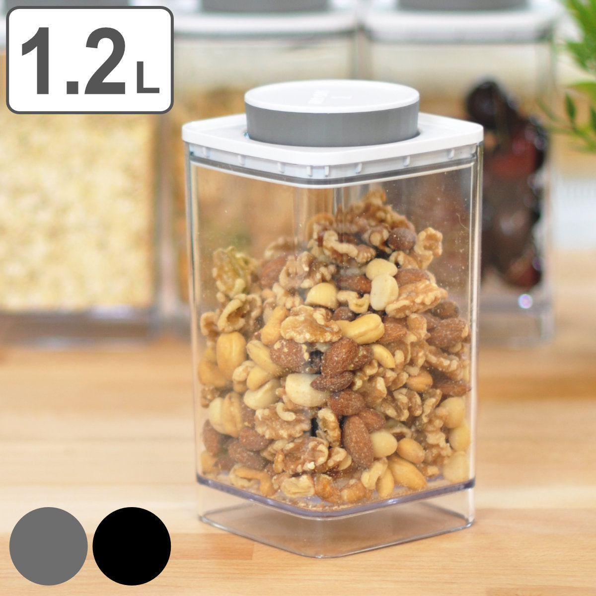 容量 | 約 1.2L 【保存量目安】 焙煎豆・コーヒー粉:約 400g ペットフード:約 400g 米:約 1kg くるみ:約 500g |