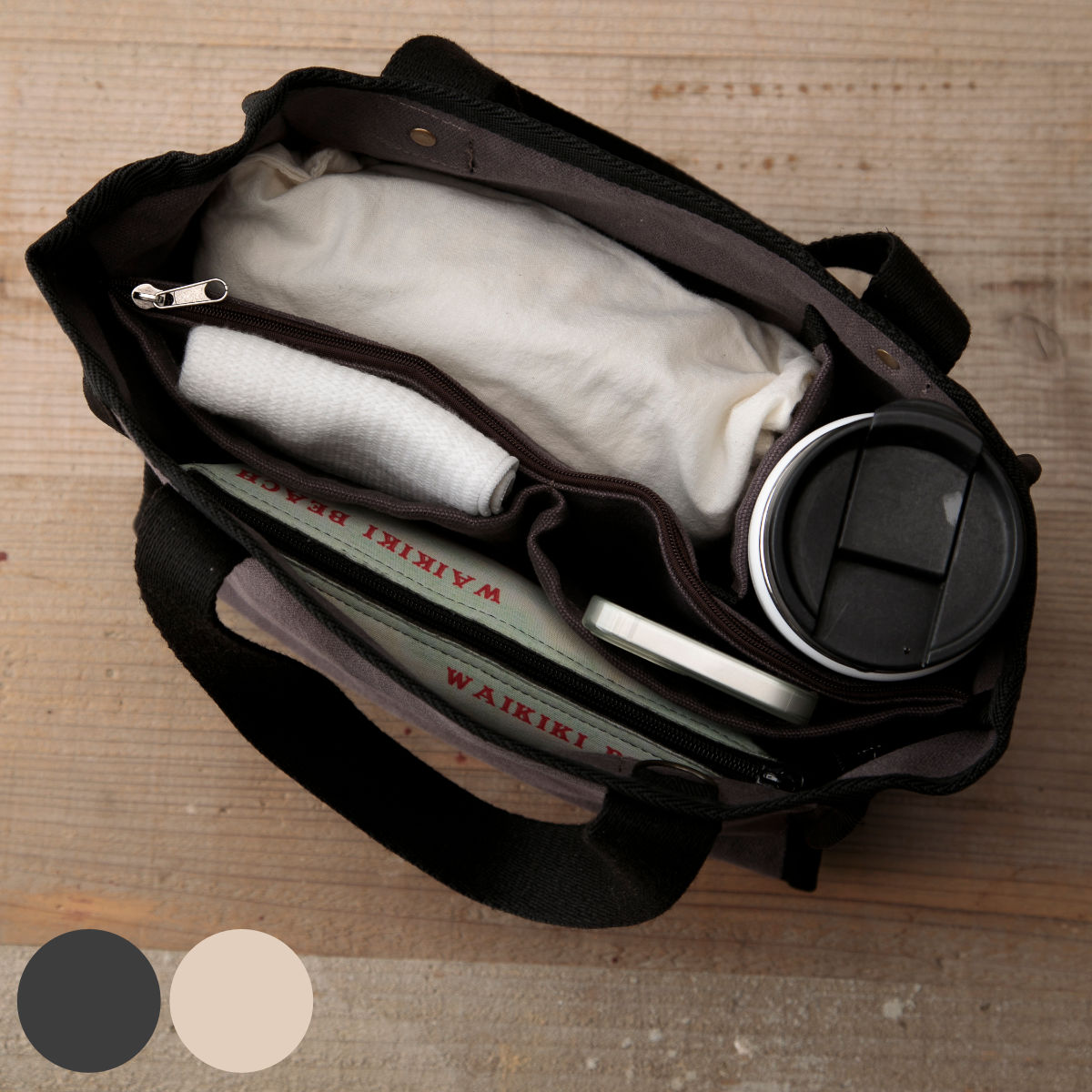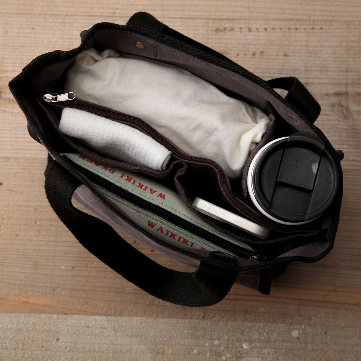 ●バッグ内は6つのスペースに仕切られており、ハンカチ、スマホ、ポーチ、タンブラーと、形に合わせて最適なスペースに整理できます。