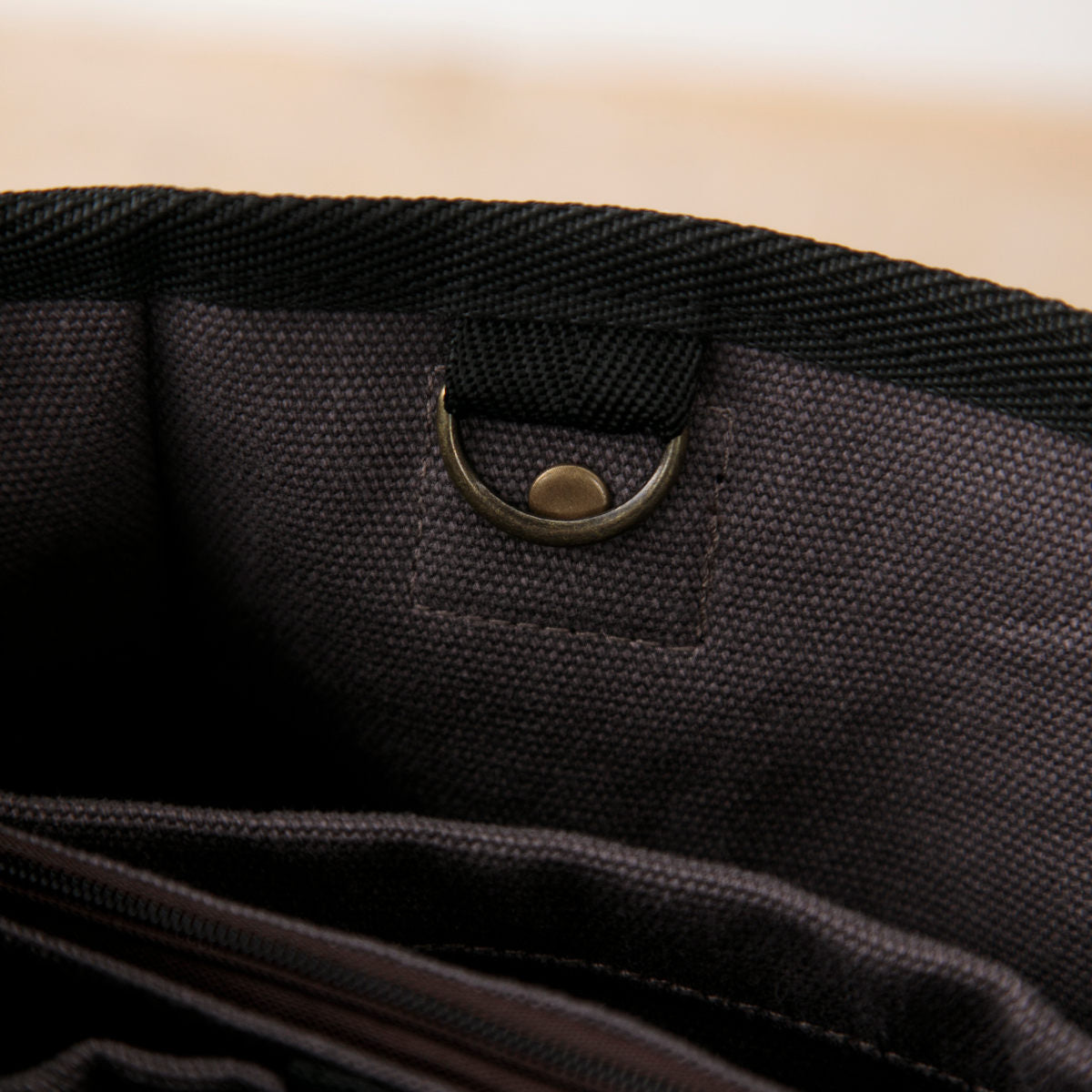 ●バッグ内側にキーリングとカラビナがあり、鍵やパスケースを引っ掛けておけます。