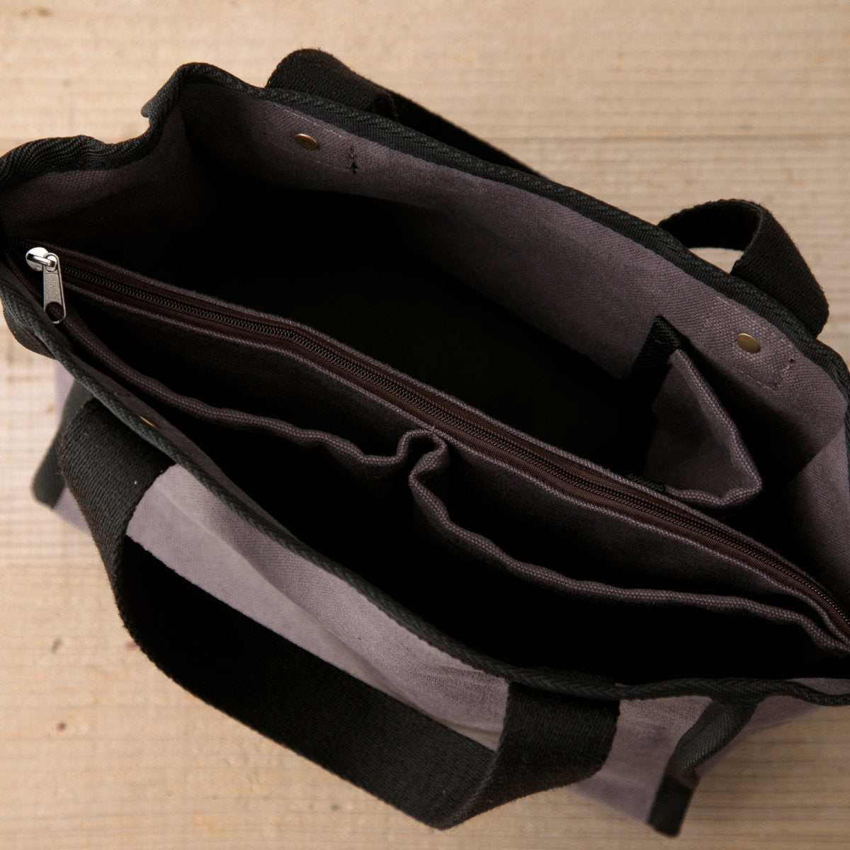 生地にはコットン100%のキャンバス地を使用しており、厚手で丈夫です。ユーズド加工による色落ち感がおしゃれで、洋服のテイストを選ばずデイリーに持てるデザインです。