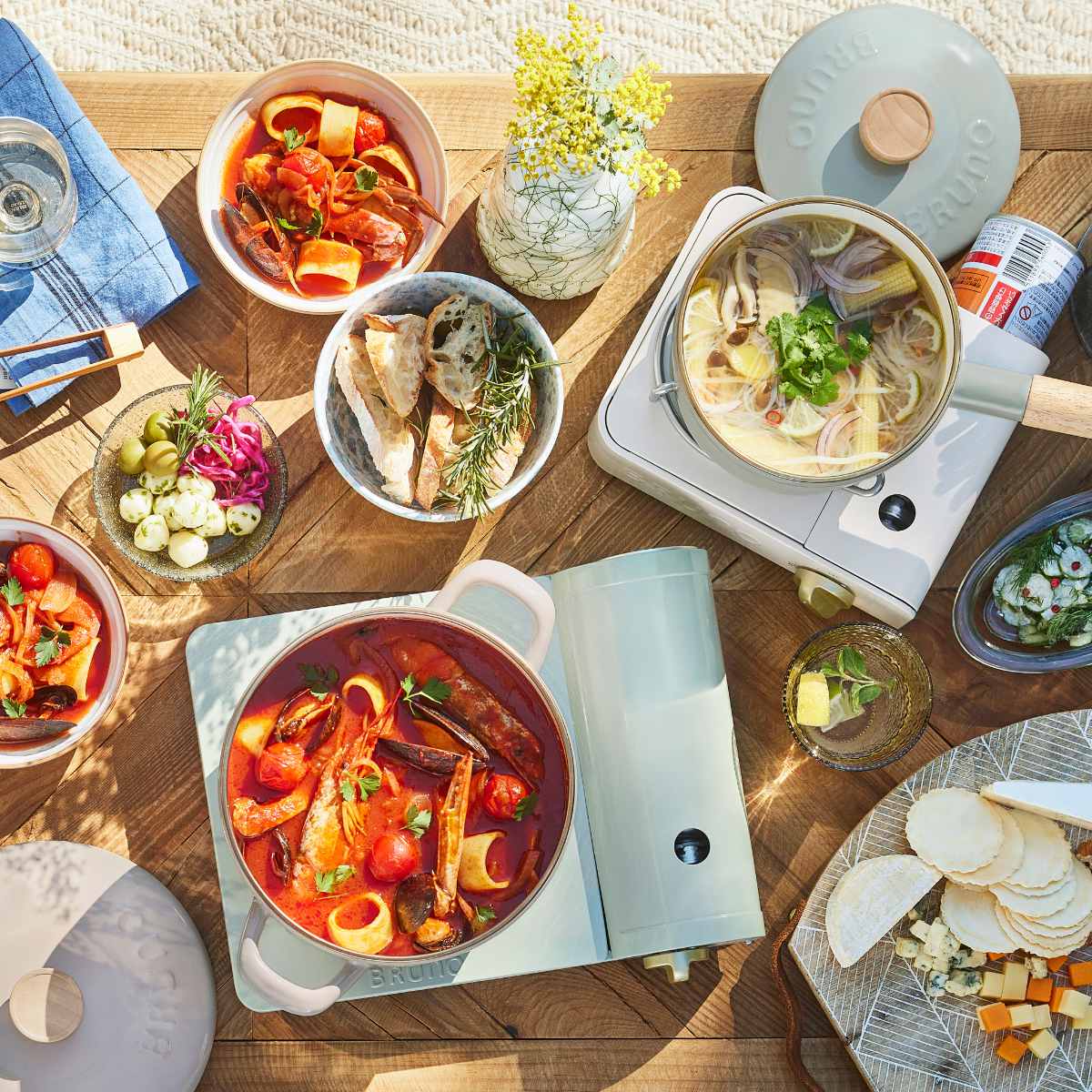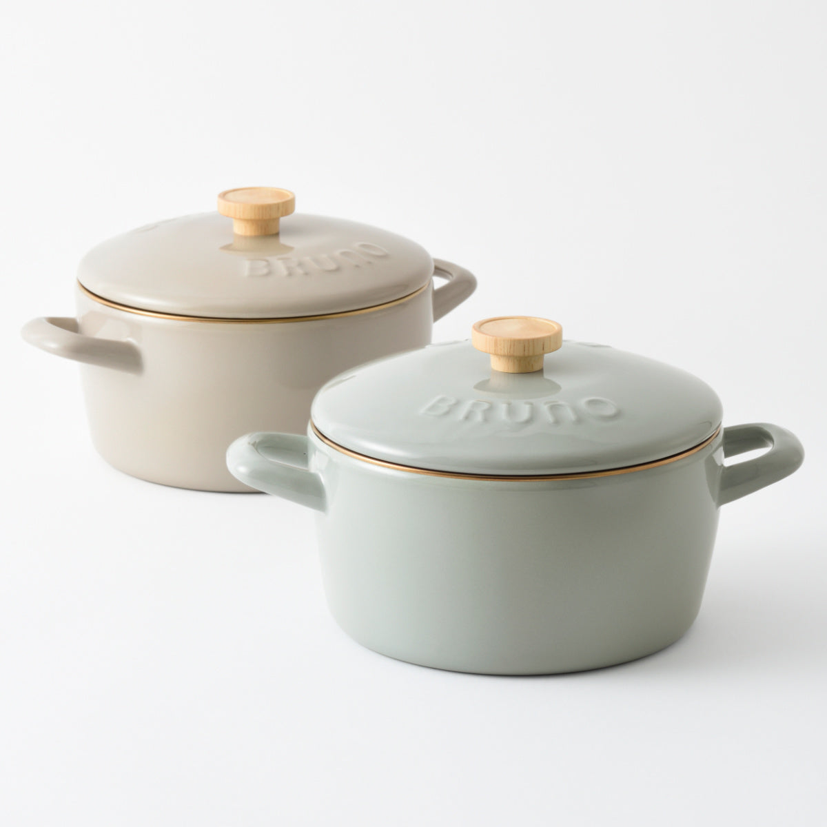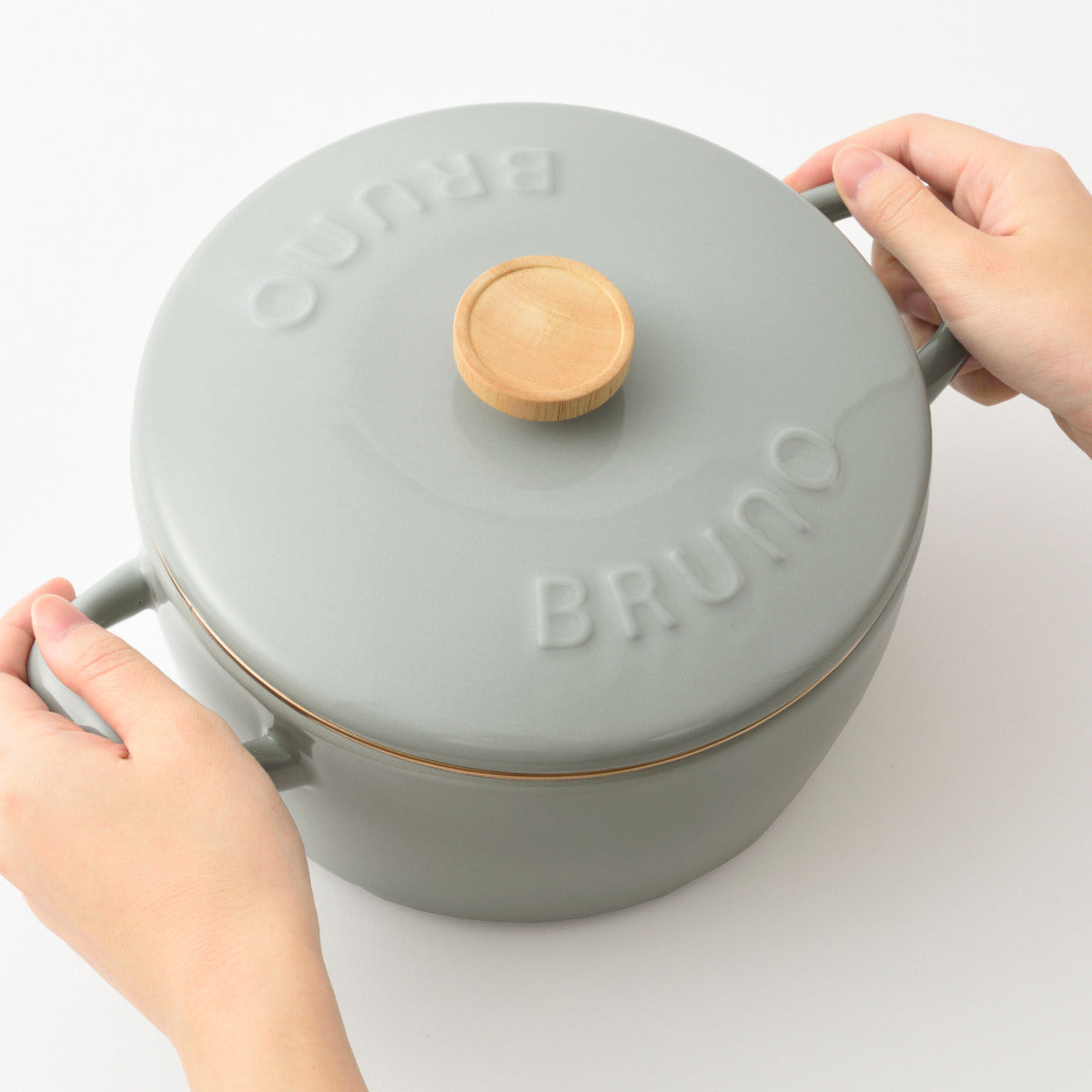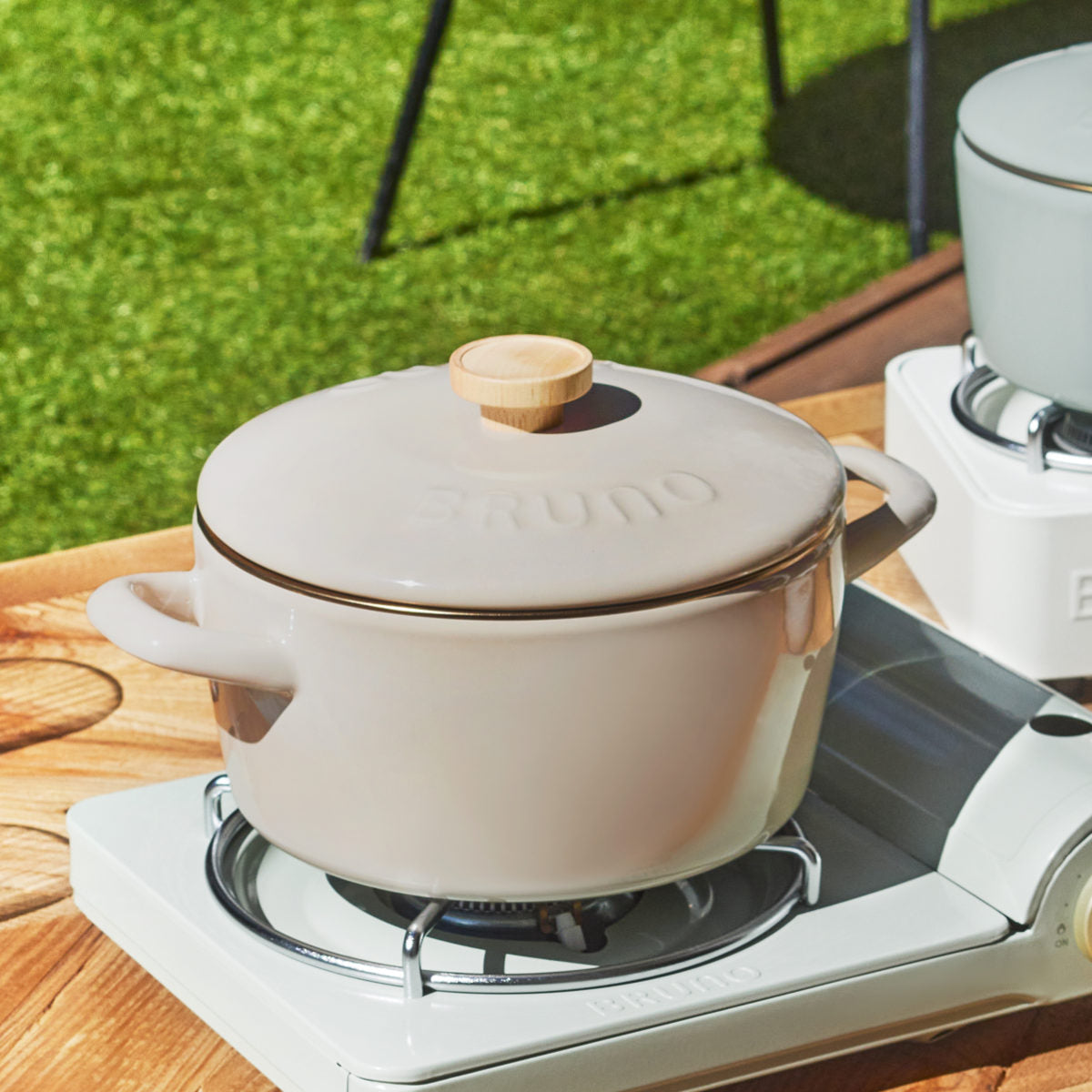 BRUNOと富士ホーローのコラボで生まれた、煮込み料理はもちろん、フタを外してオーブン調理もできる両手鍋です。ガス火でもIH調理器でも効率よく加熱できるので、毎日のキッチンからアウトドアシーンまで心地よく寄り添います。