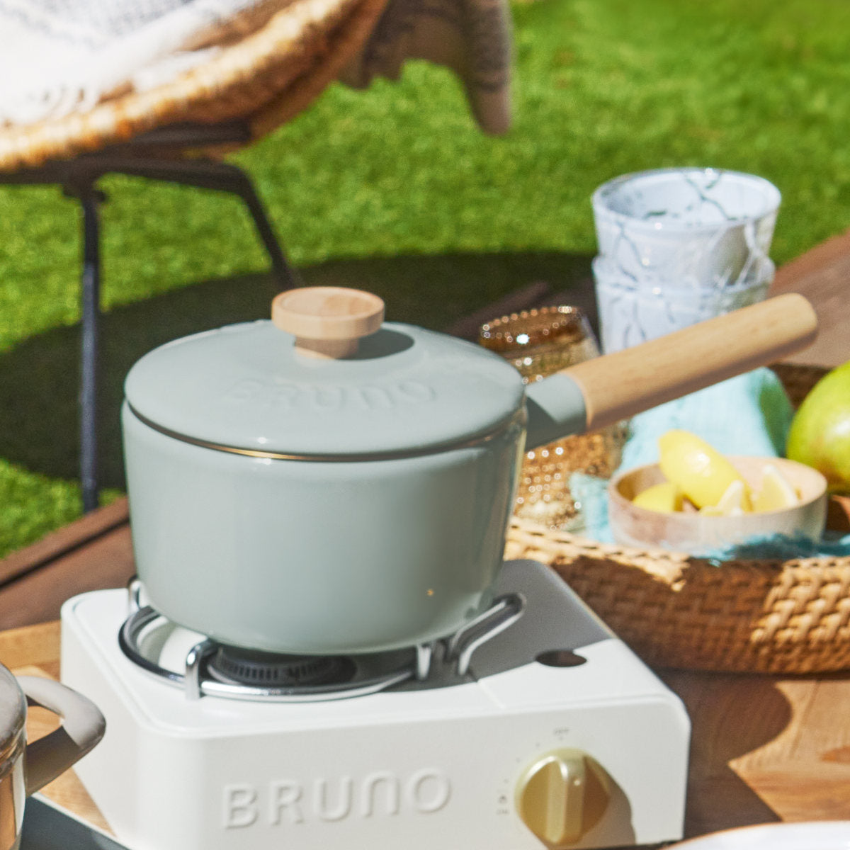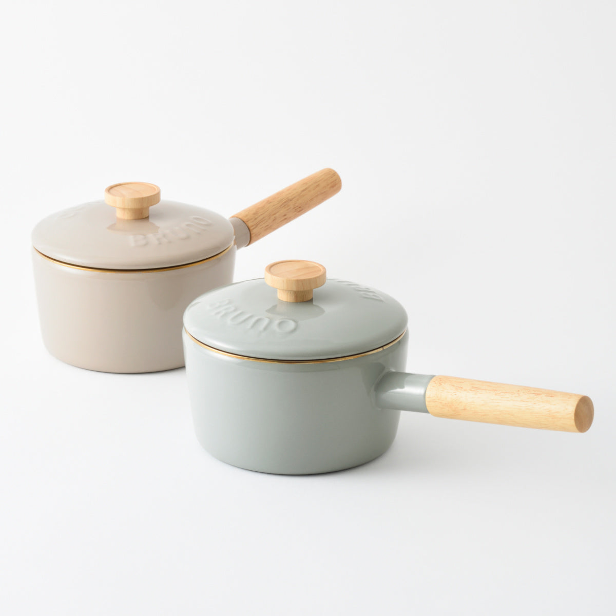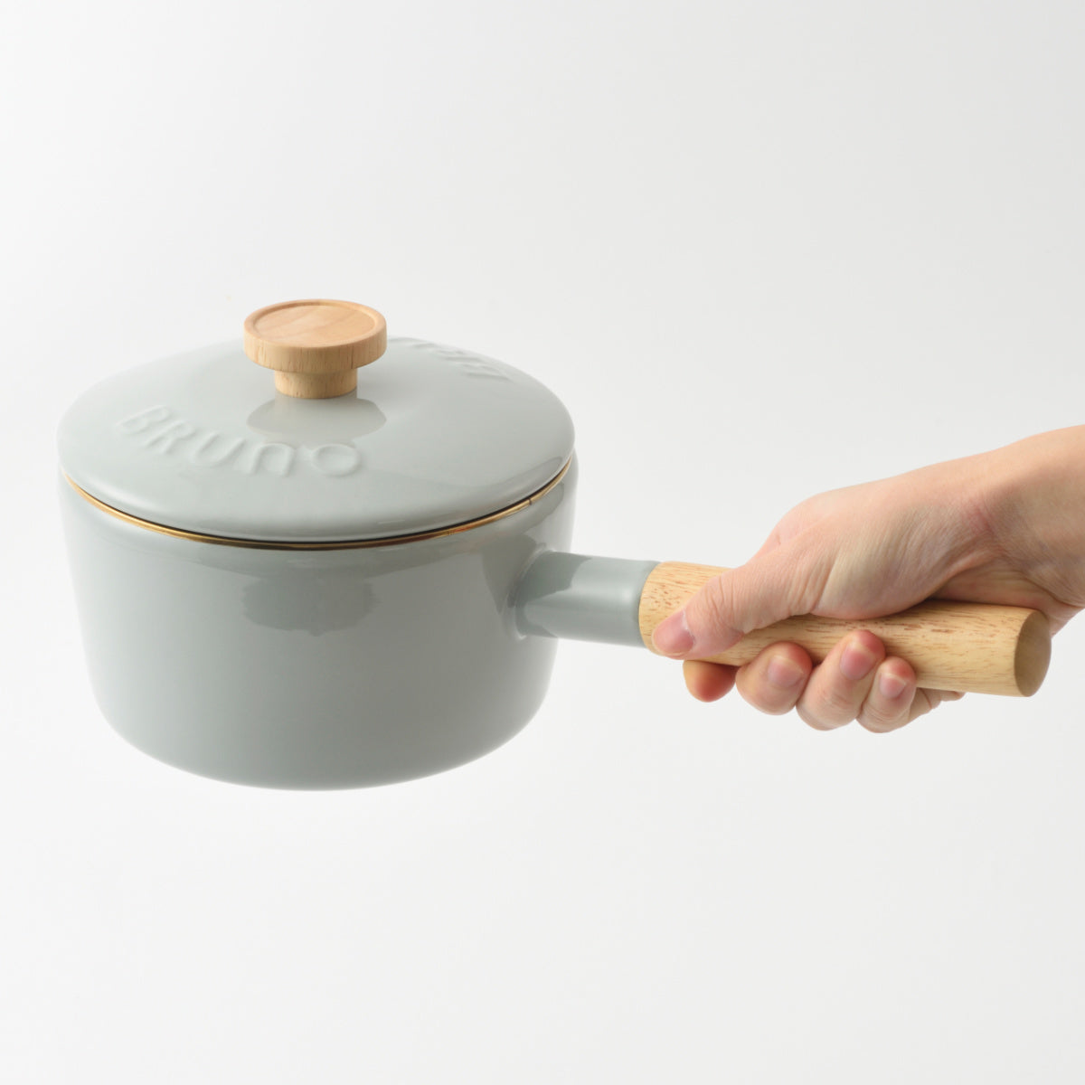 BRUNOと富士ホーローのコラボで生まれた、少量のものをさっと茹でたり、2~3人分のスープづくりにも適した片手鍋です。ガス火でもIH調理器でも効率よく加熱できるので、毎日のキッチンからアウトドアシーンまで心地よく寄り添います。