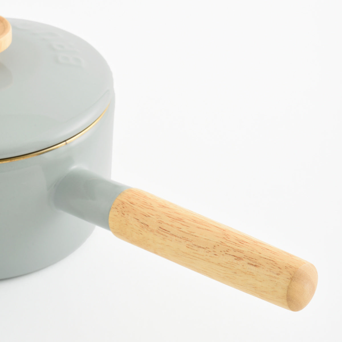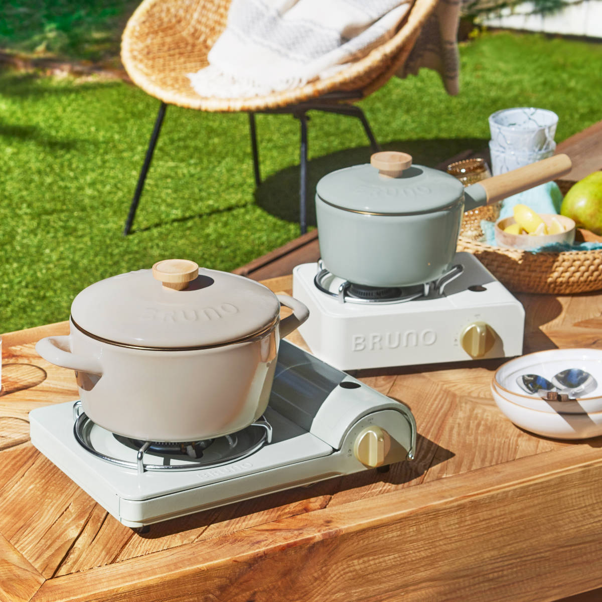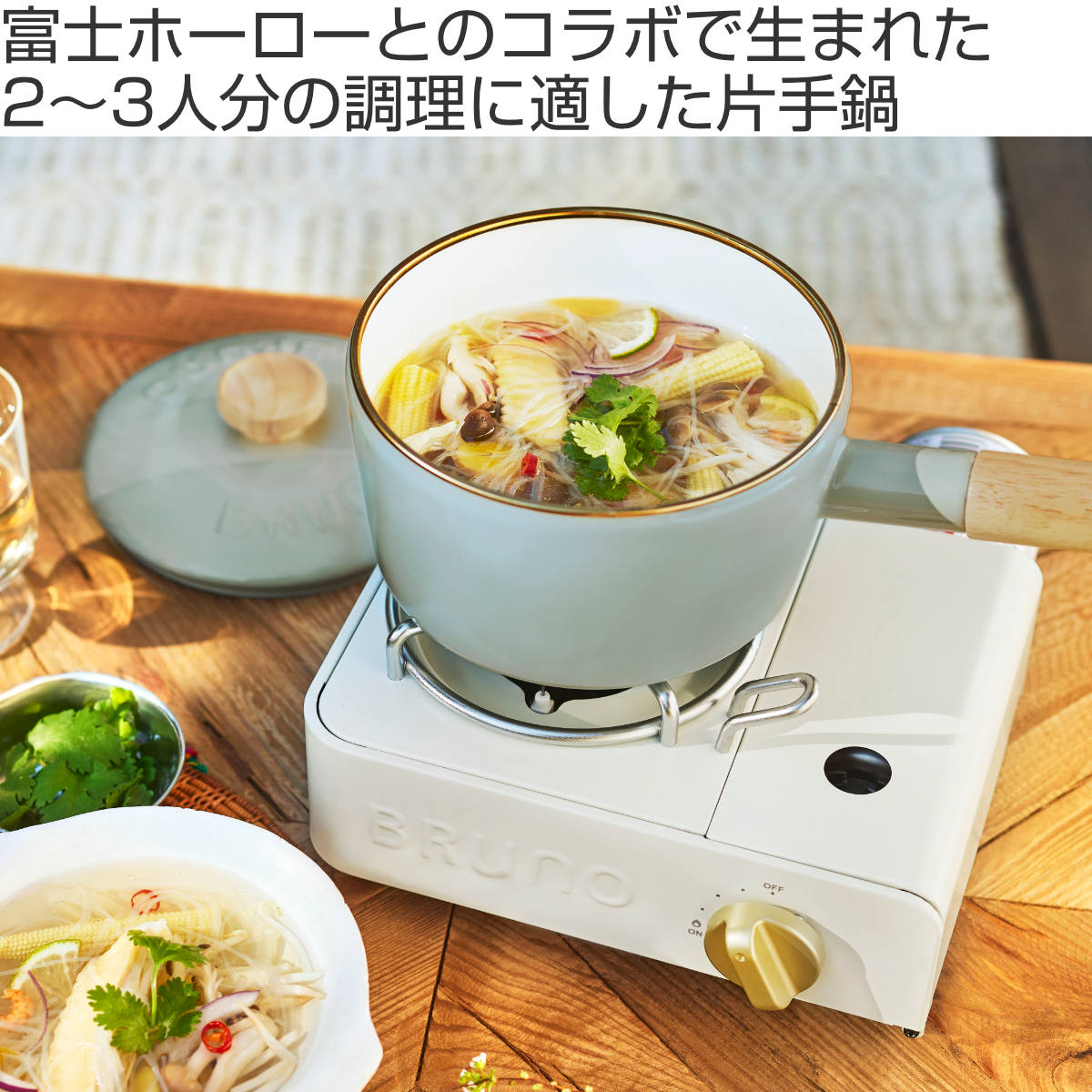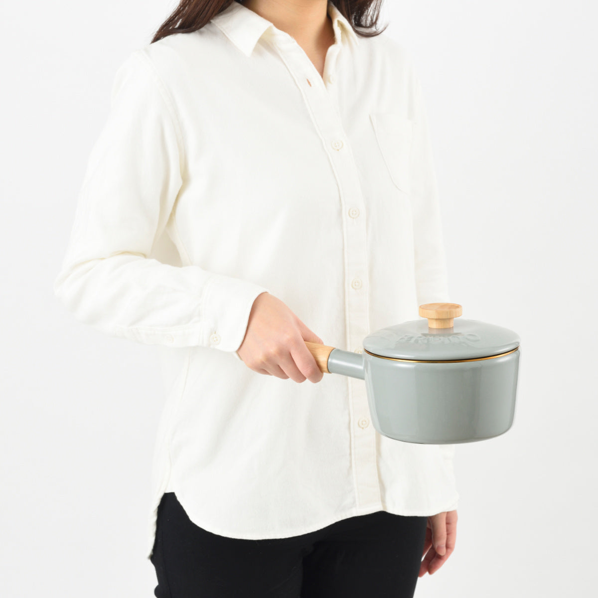 BRUNOと富士ホーローのコラボで生まれた、少量のものをさっと茹でたり、2~3人分のスープづくりにも適した片手鍋です。ガス火でもIH調理器でも効率よく加熱できるので、毎日のキッチンからアウトドアシーンまで心地よく寄り添います。