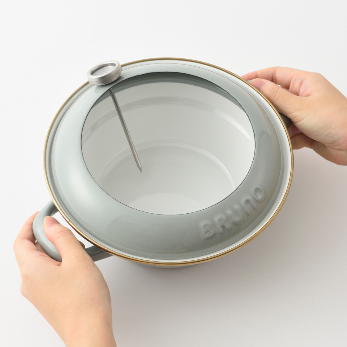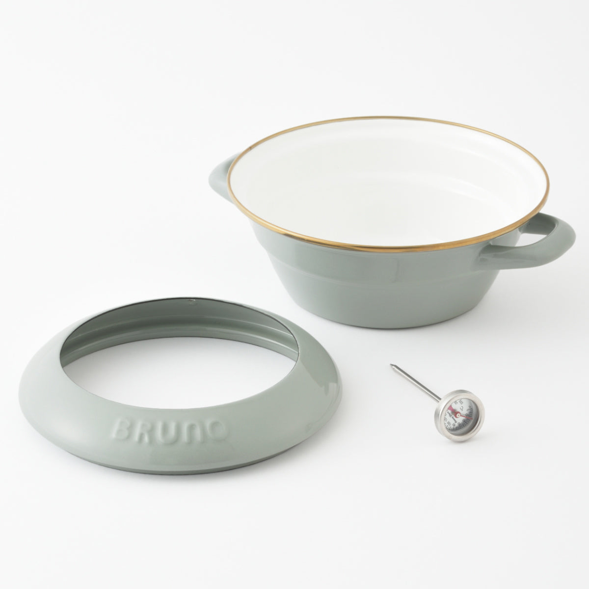 当商品は富士ホーローとBRUNOのコラボレーションによって生まれました。富士ホーローは、創業75周年を迎えるホーローの老舗です。毎日の台所仕事を楽しくする使い勝手の良さ、現代の生活様式に自然にとけ込むシンプルな佇まい、日本人スタッフの厳格な管理のもと、タイの自社工場でひとつ、ひとつ丁寧に生産されています。