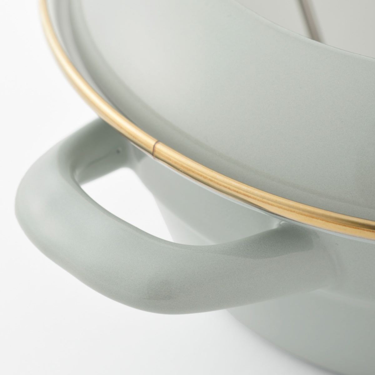 ホーロー製品は手作業で釉薬(ゆうやく)をかけるため、縁や裏側に塗りムラが起こります。また、焼成の際に吊るして炉に入れるため、縁や取っ手の裏側に金具の跡が残る場合があります。