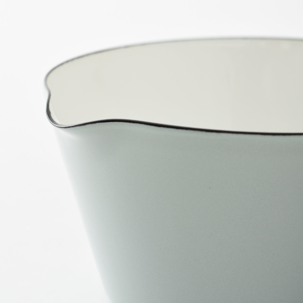 ※ホーロー製品は手作業で釉薬(ゆうやく)をかけるため、縁や裏側に塗りムラが起こります。また、焼成の際に吊るして炉に入れるため、縁や取っ手の裏側に金具の跡が残る場合があります。