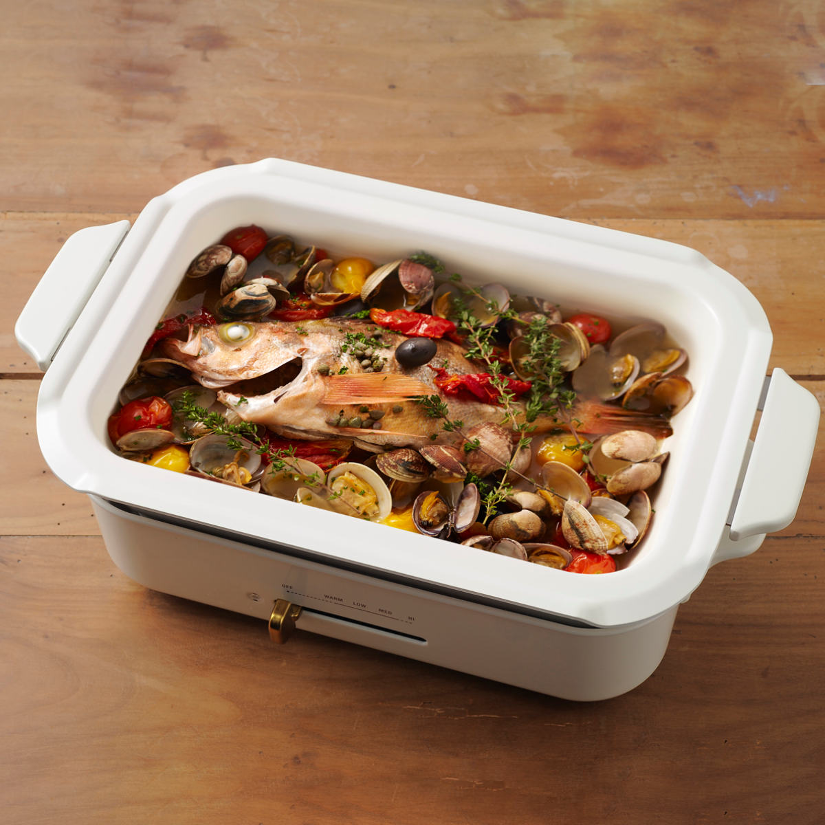 コンパクトホットプレートの上にセットして煮物やお鍋が楽しめる、「コンパクトホットプレート」専用オプションの深鍋です。おでん、ポトフ、ボルシチ、アクアパッツァなど、様々なお料理をお楽しみいただけます。