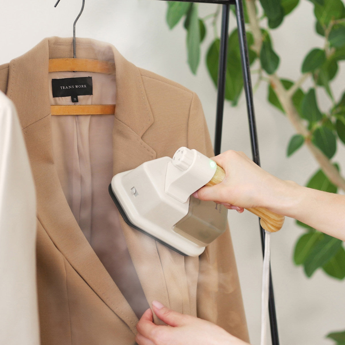 忙しいお出かけ前に気になる部分だけをケアするのにピッタリです。衣類をハンガーに掛けたまま、スチームで気になる部分をサッと手早くシワ伸ばしが出来ます。