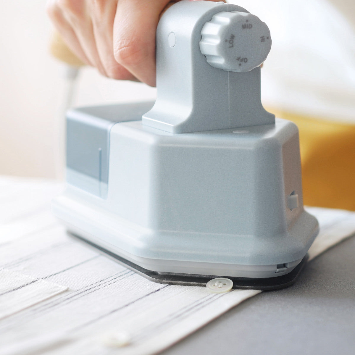 ダイヤル3段階の温度調節機能付き 衣類に合わせて3段階の温度調節が出来ます。MID・HIモードのときはスチームも使用可能です。 |