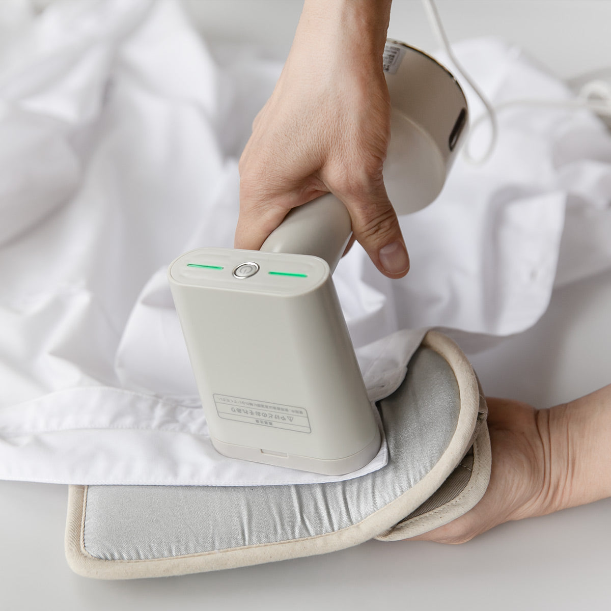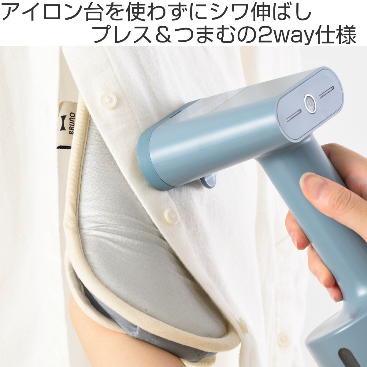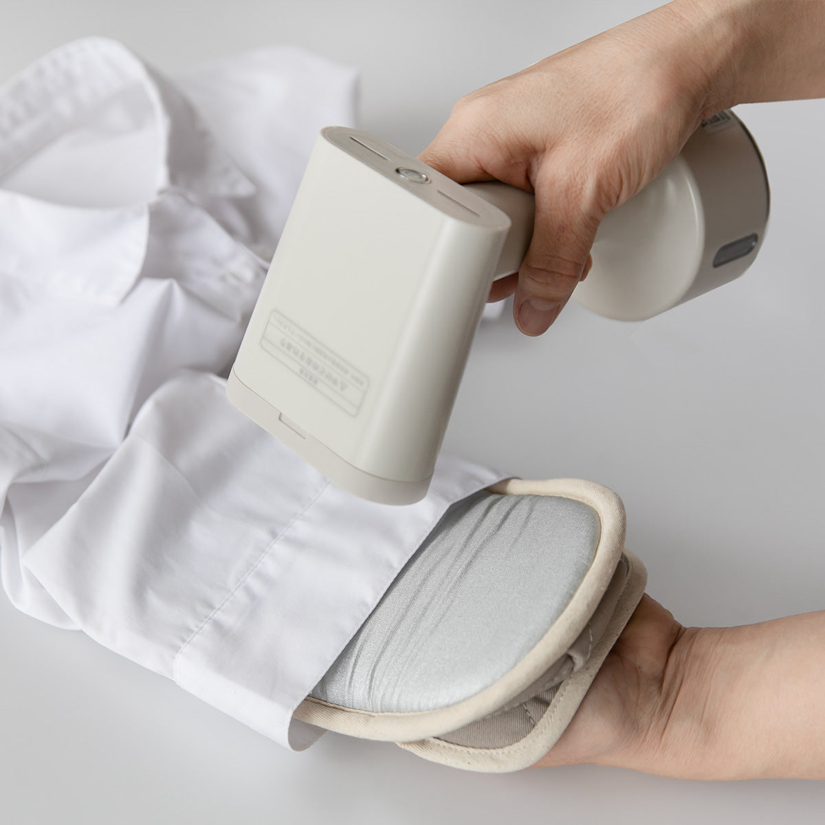 衣類をハンガーに掛けたまま手軽にアイロンが掛けられてシワをサッと伸ばします。コンパクトで小回りが利くので、襟元や袖口など細々した部分にもサッと掛けられます。また、衣類の端をつかんで伸ばしながらスチームを当てて使うことも出来ます。衣類の種類や用途に合わせて使い分けが出来る便利な2way仕様です。