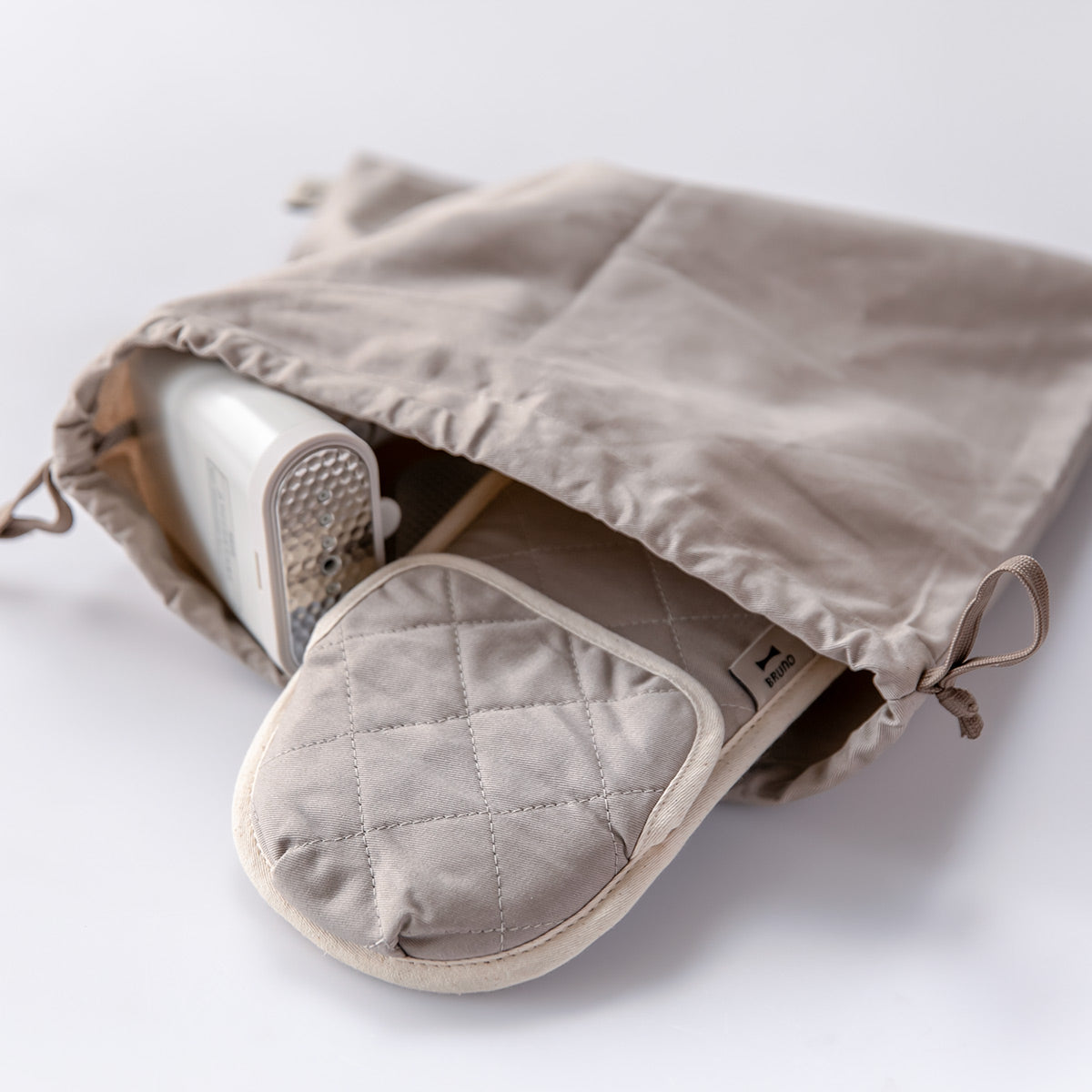 ミトンとお手持ちのハンディースチーマーが一緒に収納出来る、大きめの収納袋が付いています。旅行先や出張先への持ち運びに便利です。