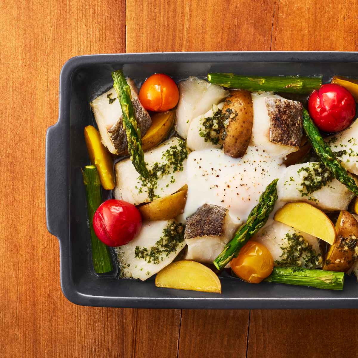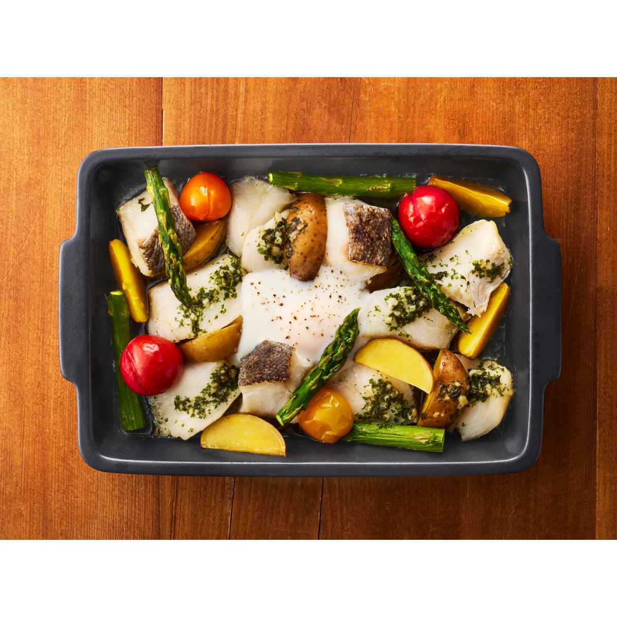 並べた食材に味付けをして加熱するだけで、おいしい料理が手軽にできあがります。そのまま食卓へ出せるので、洗い物が少なくなります。