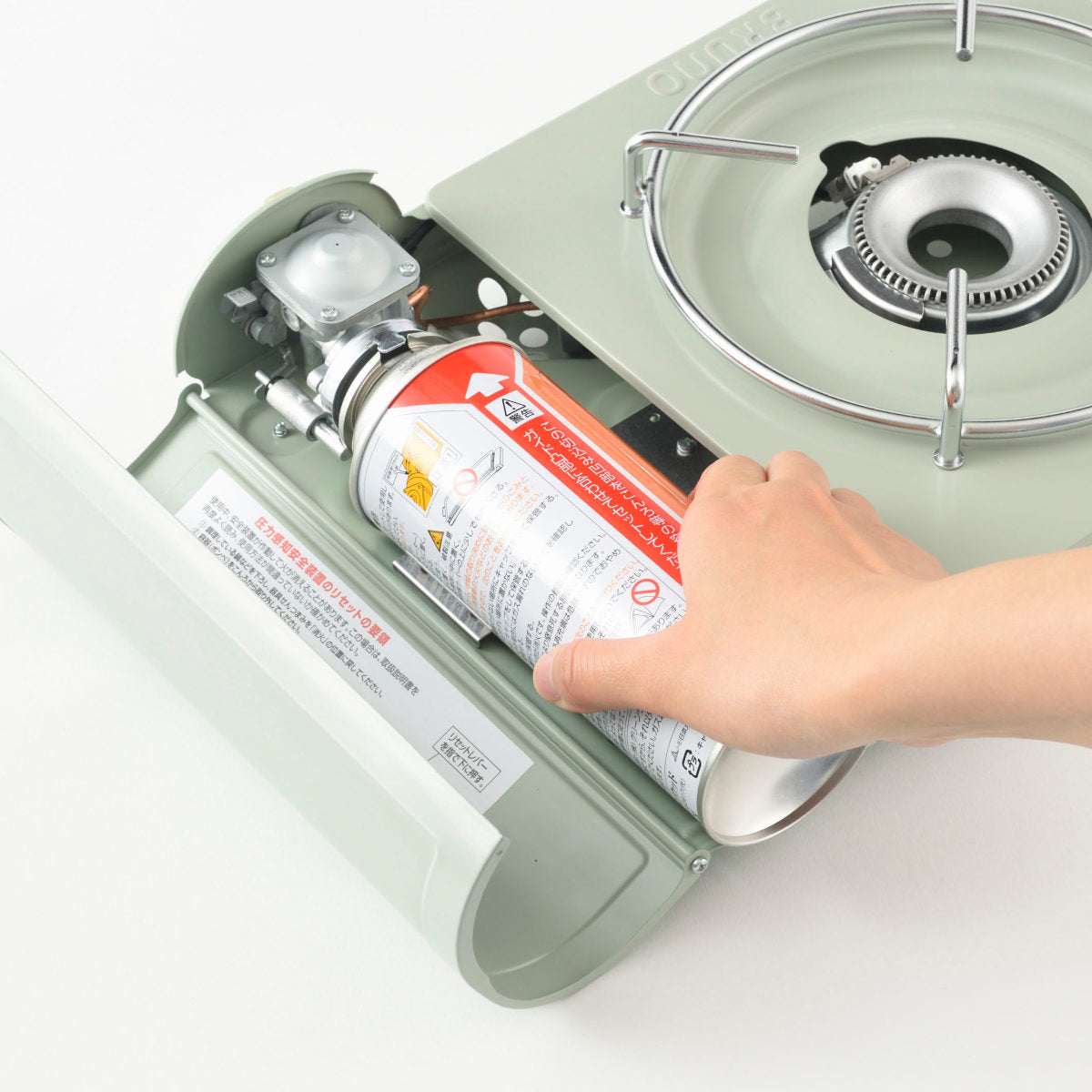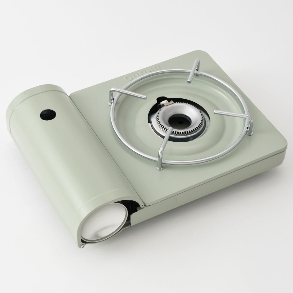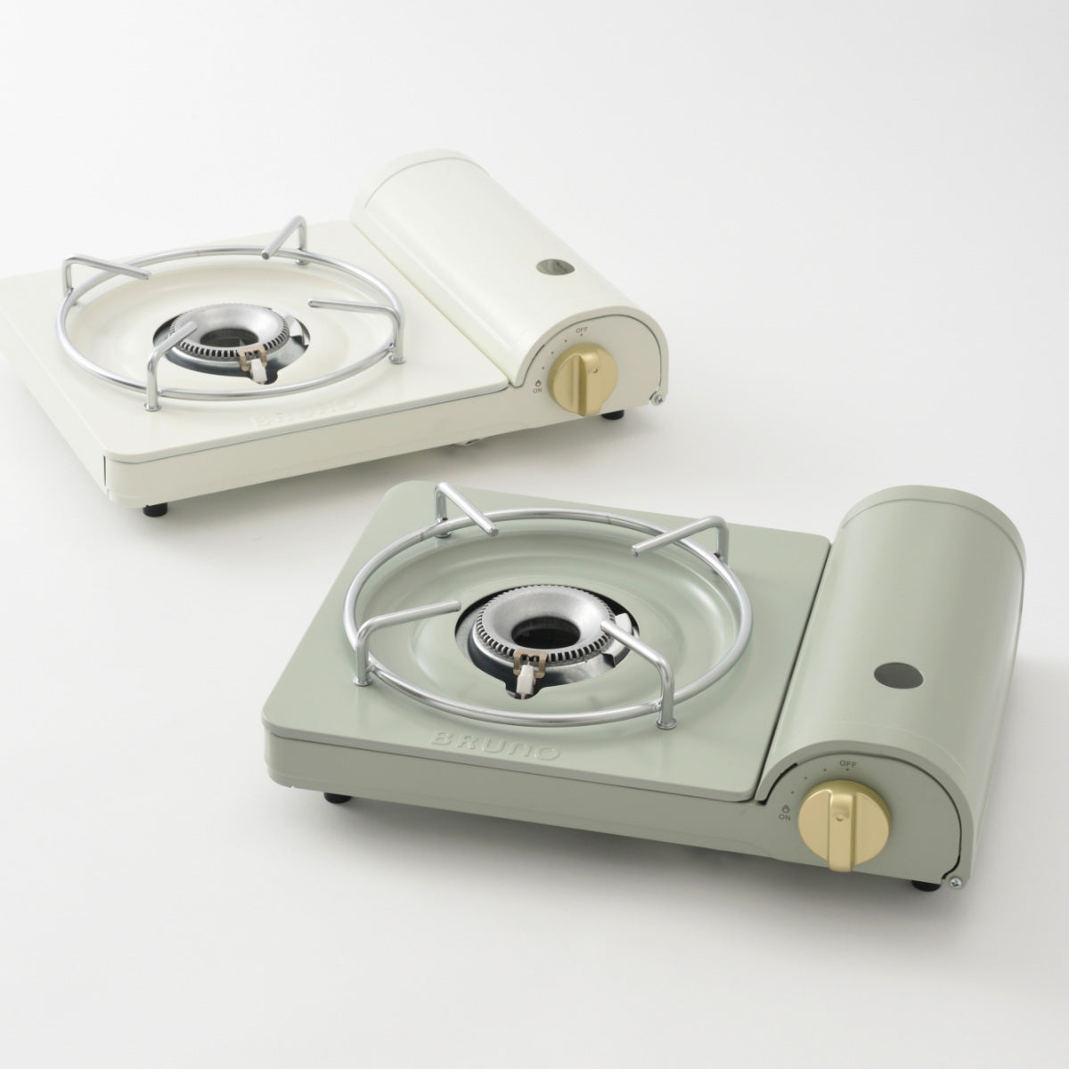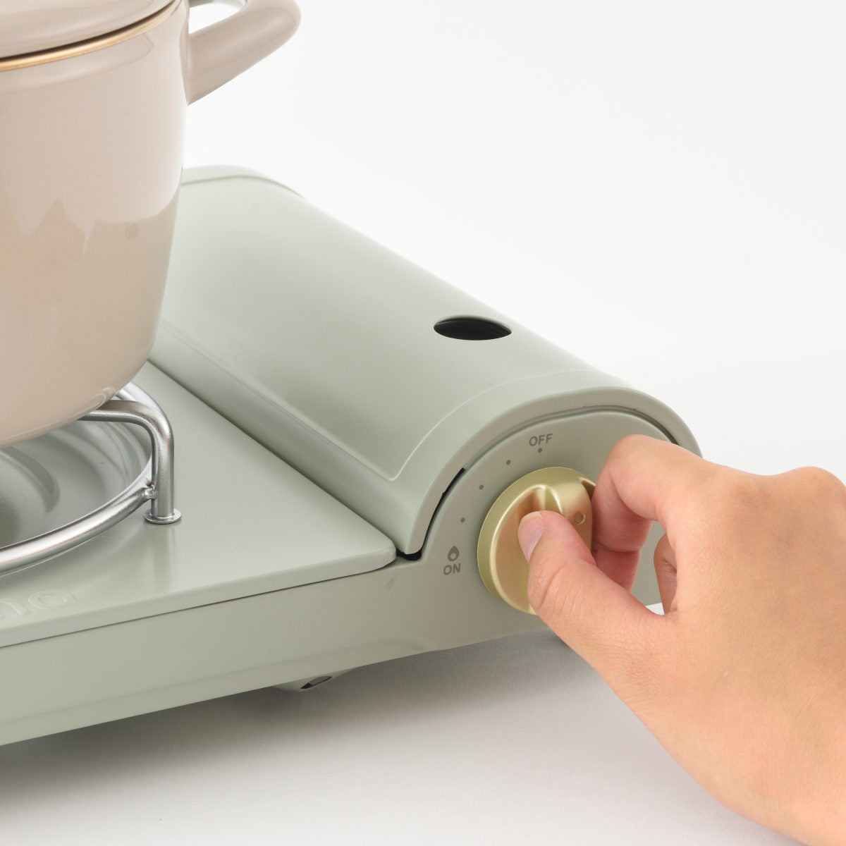 アイボリーとグリーンの2色はどちらもお洒落なニュアンスカラーです。各部のカラーリングはインテリアやエクステリアに溶け込みやすく、カセットコンロにありがちな無機質な印象になりません。