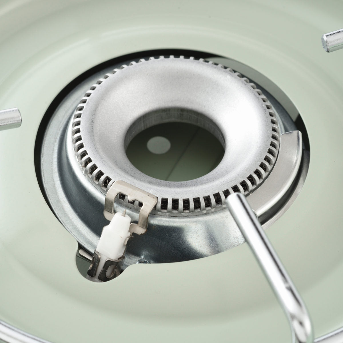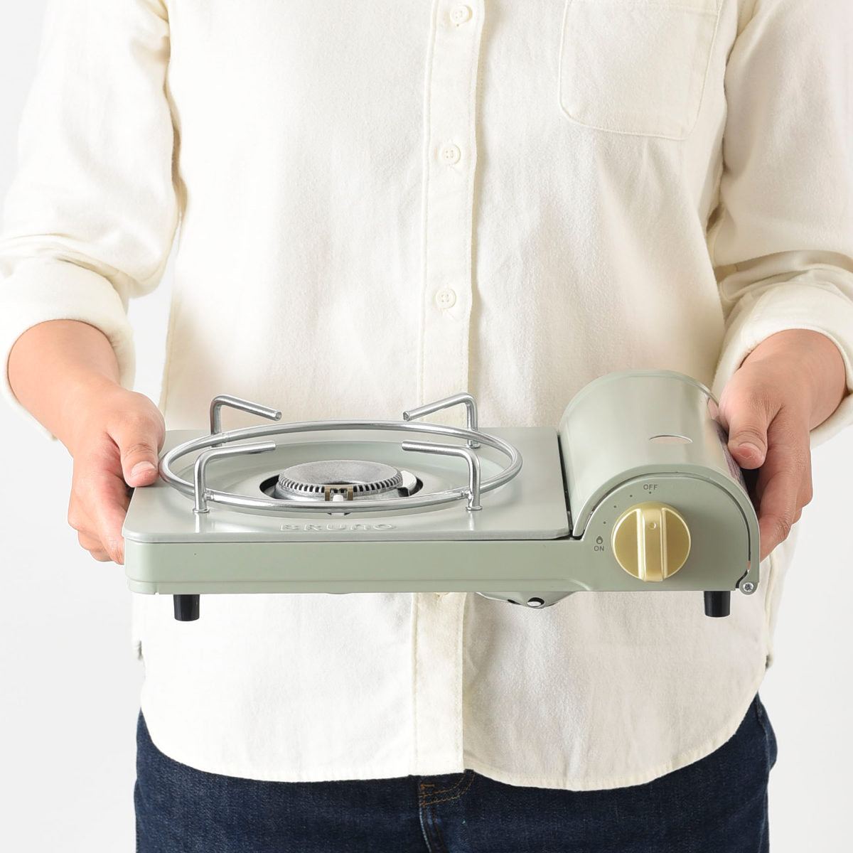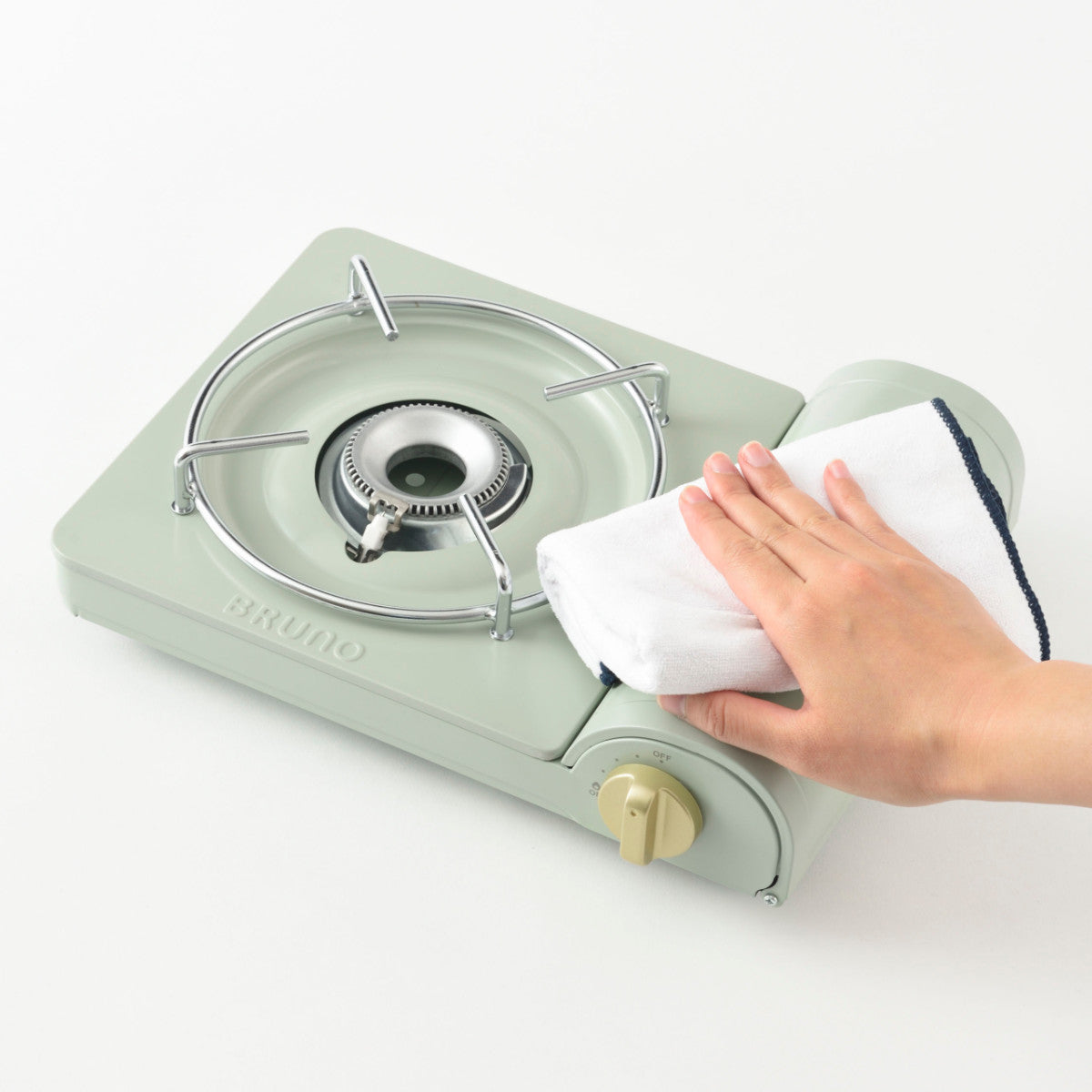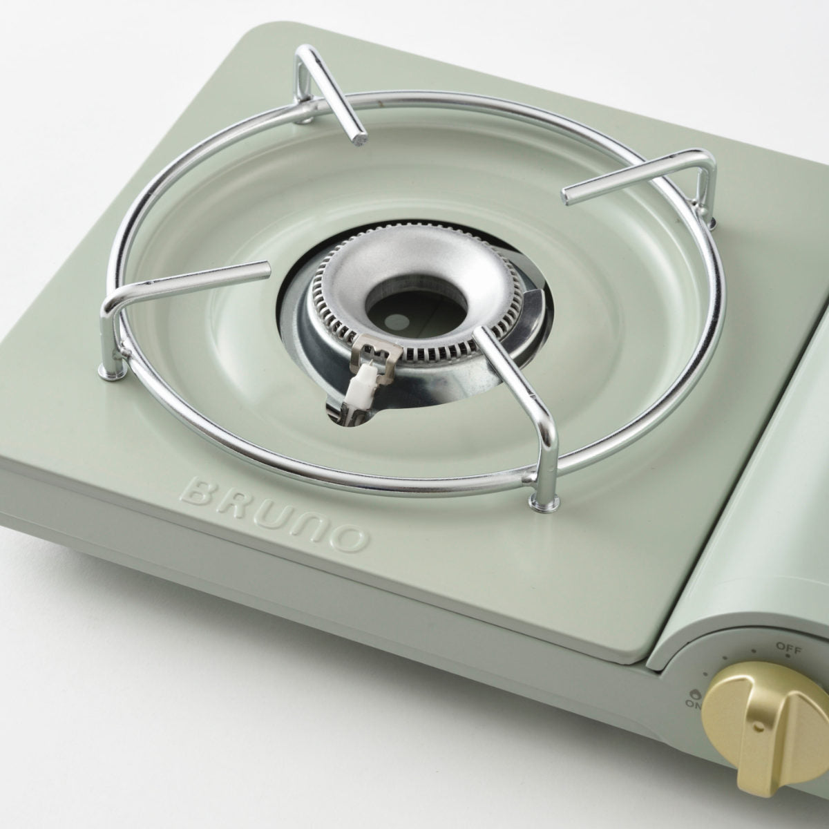 アイボリーとグリーンの2色はどちらもお洒落なニュアンスカラーです。各部のカラーリングはインテリアやエクステリアに溶け込みやすく、カセットコンロにありがちな無機質な印象になりません。