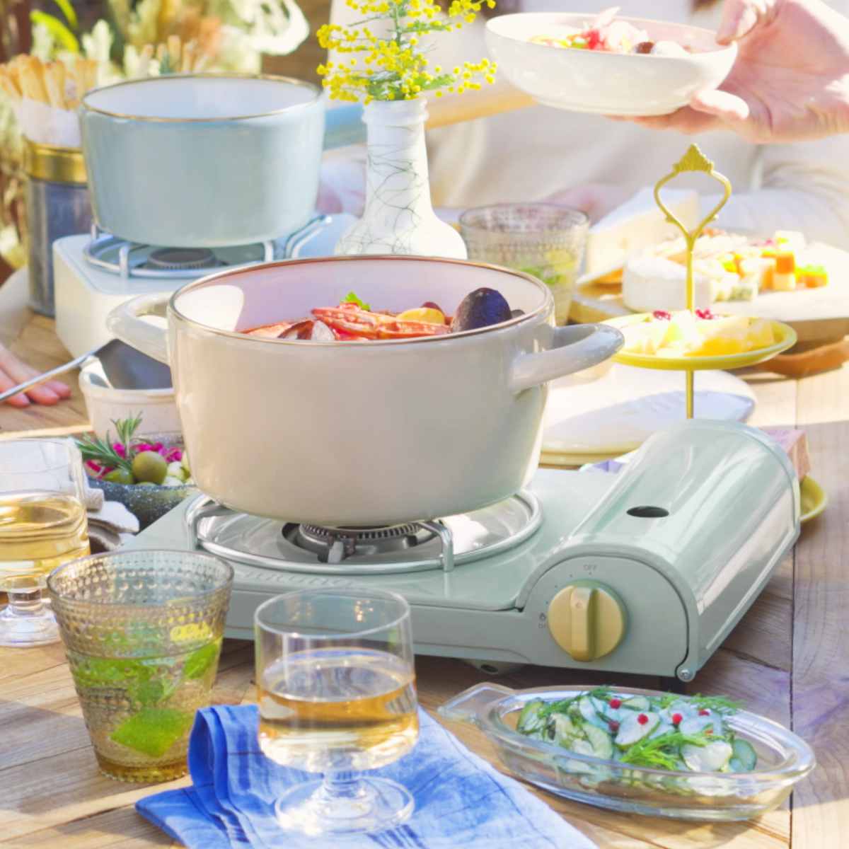 3.5kWと高火力で、使い勝手のいいスリムタイプのカセットコンロです。ガス機器製品を扱う老舗メーカー・千石とコラボし、機能とデザインのバランスにこだわりました。毎日の食卓はもちろん、気分を変えてお庭やベランダなど外で食事をしたいシーンにもおすすめです。