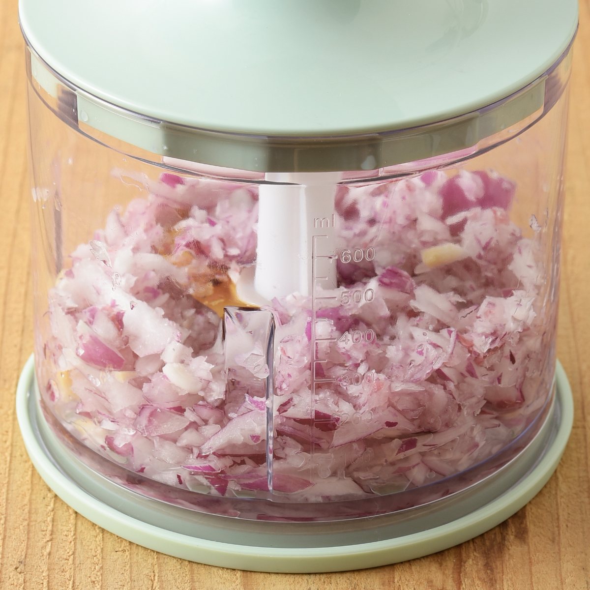 チタンコート刃搭載のチョッパーボトルは、1分間に約2800回転するので、短い時間でムラなくカットしてくれます。