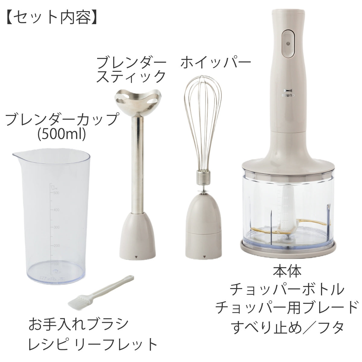 BRUNO マルチスティックブレンダー フードチョッパー・ホイッパー付き