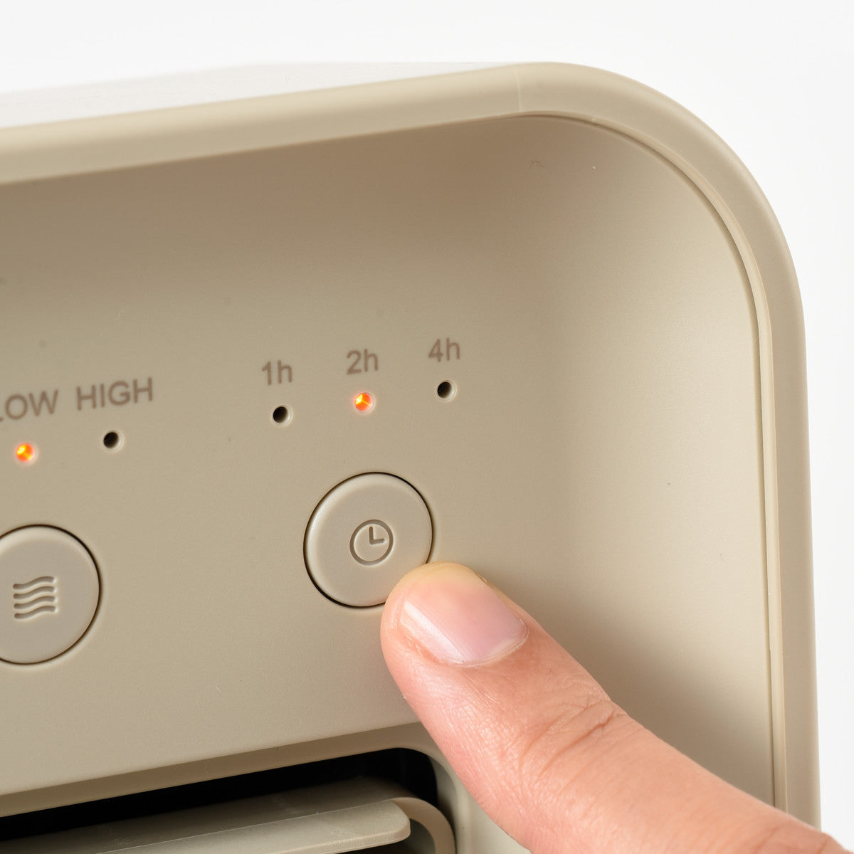 1時間、2時間、4時間のタイマー設定が可能です。設定時間になると自動で電源OFFになります。就寝時や、切り忘れ防止に安心の機能です。