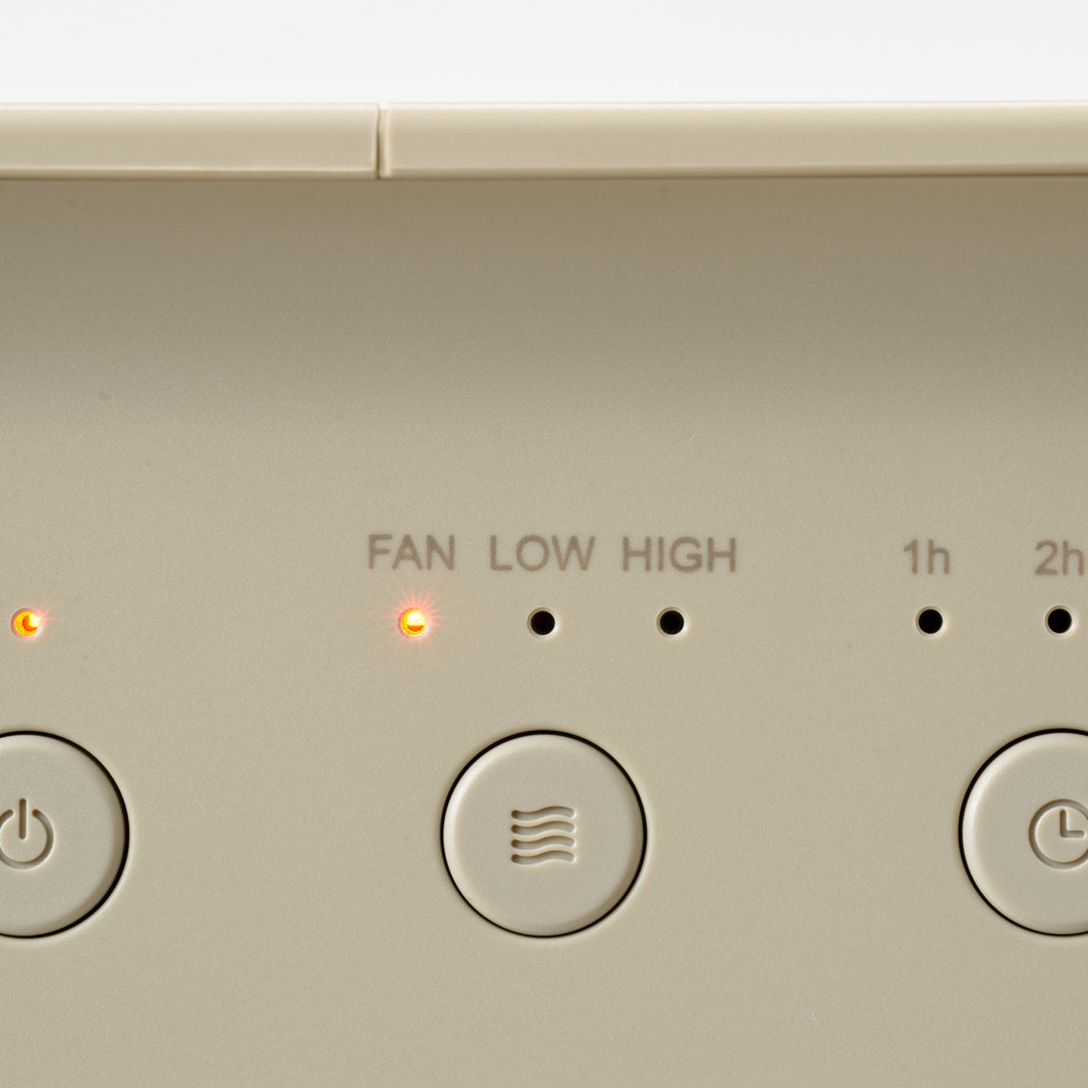 温風はLOW(800W)、HIGH(1200W)の2段階調節ができます。スイッチを押すごとに温風と送風(FAN)を切り替えることができます。