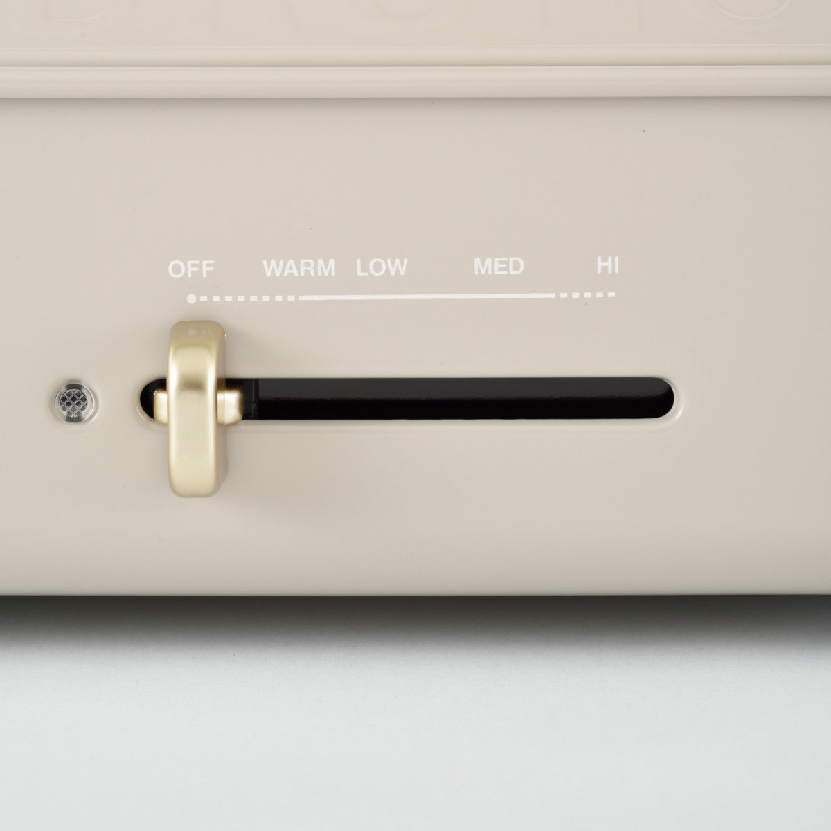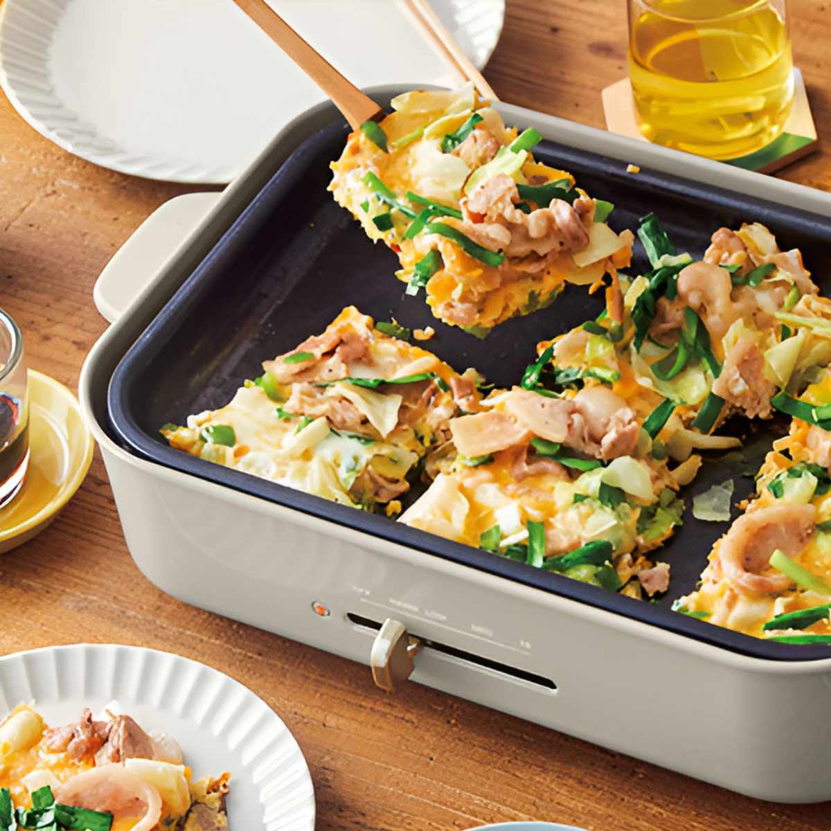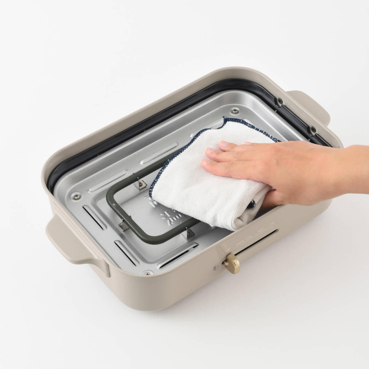 A4スペースにすっきり置ける、2~3人用のちょうどいいサイズ感です。食卓を占領しないから、1人暮らしでも、家族の食事にも、毎日使える新しいホットプレートの形です。