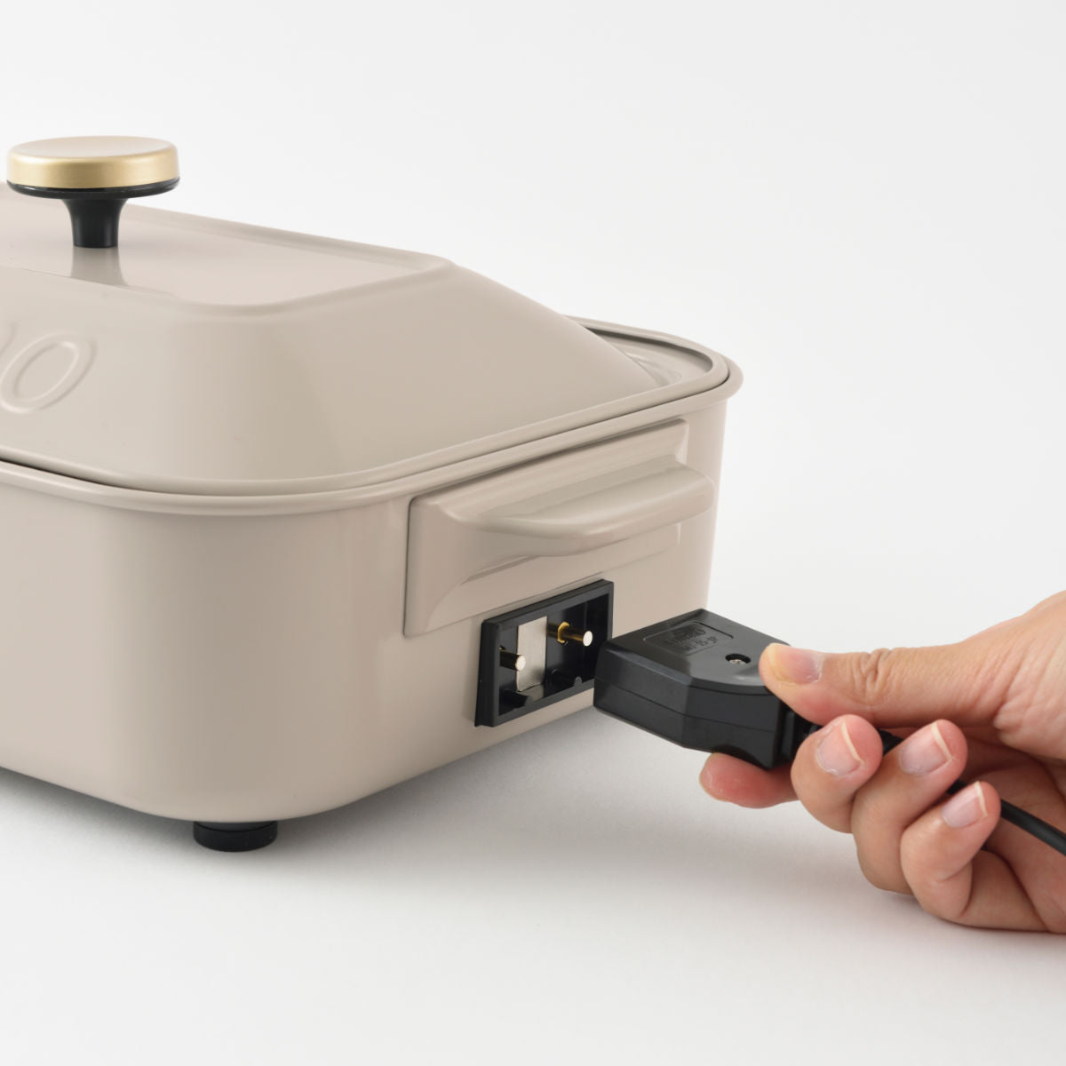 コンセントはマグネット式なので、調理中に万が一引っかかっても簡単にコードが外れて安心です。また、自動で設定温度を維持するサーモスタットが付いており、温度の上がり過ぎを防ぎます。