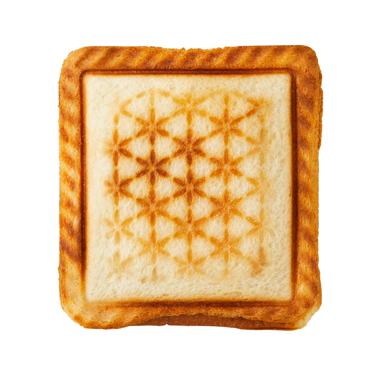 6枚切りの食パンも挟めるサイズで、あれもこれも欲張りに挟んで、ボリュームのあるホットサンドが作れます。ヨーロッパの焼き菓子をイメージした模様の焼き目は、お皿に置いただけで食卓を素敵に彩ります。