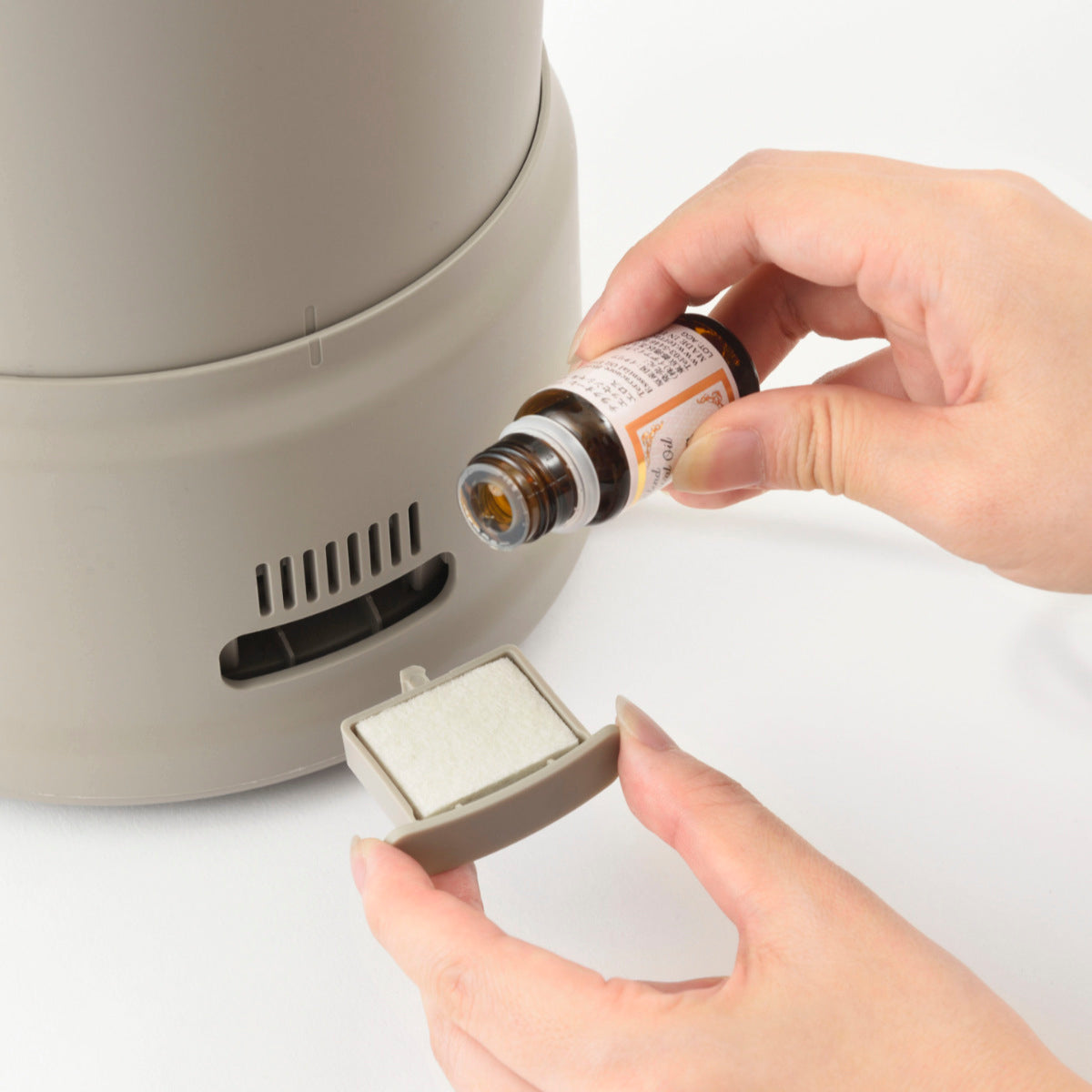アロマケース内のパッドにアロマオイルを垂らせば、お気に入りの香りを楽しめます。