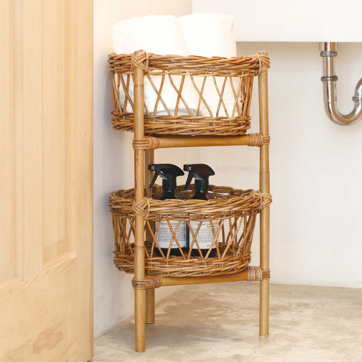 ●様々なシーンで役立つラタン製の2段バスケットです。