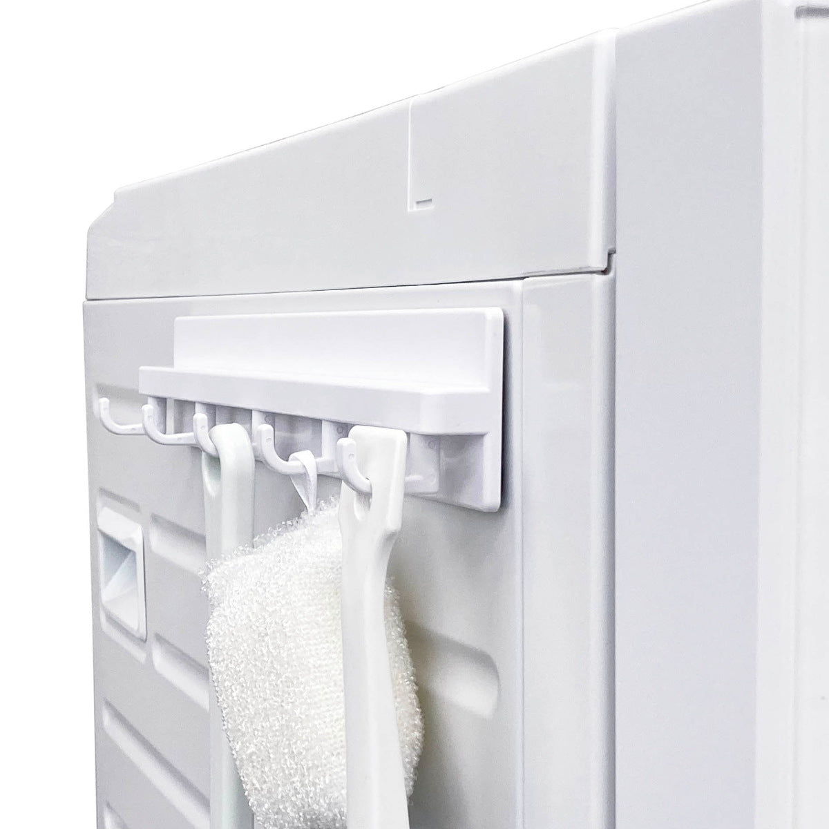 ●磁石が付く洗濯機や浴室などに貼り付けて周りにある小物を吊り下げられます。