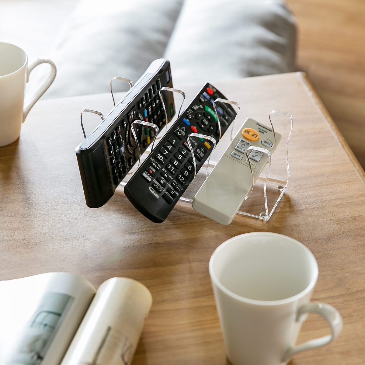 アクリルの透明感が美しいリモコンラックです。アクリルのクリアな見た目は、お部屋にスッキリとした清潔感と広がりのある開放感を与えてくれます。日の当たる場所であれば、時間によって表情を変えて楽しませてくれるのも魅力の1つです。
