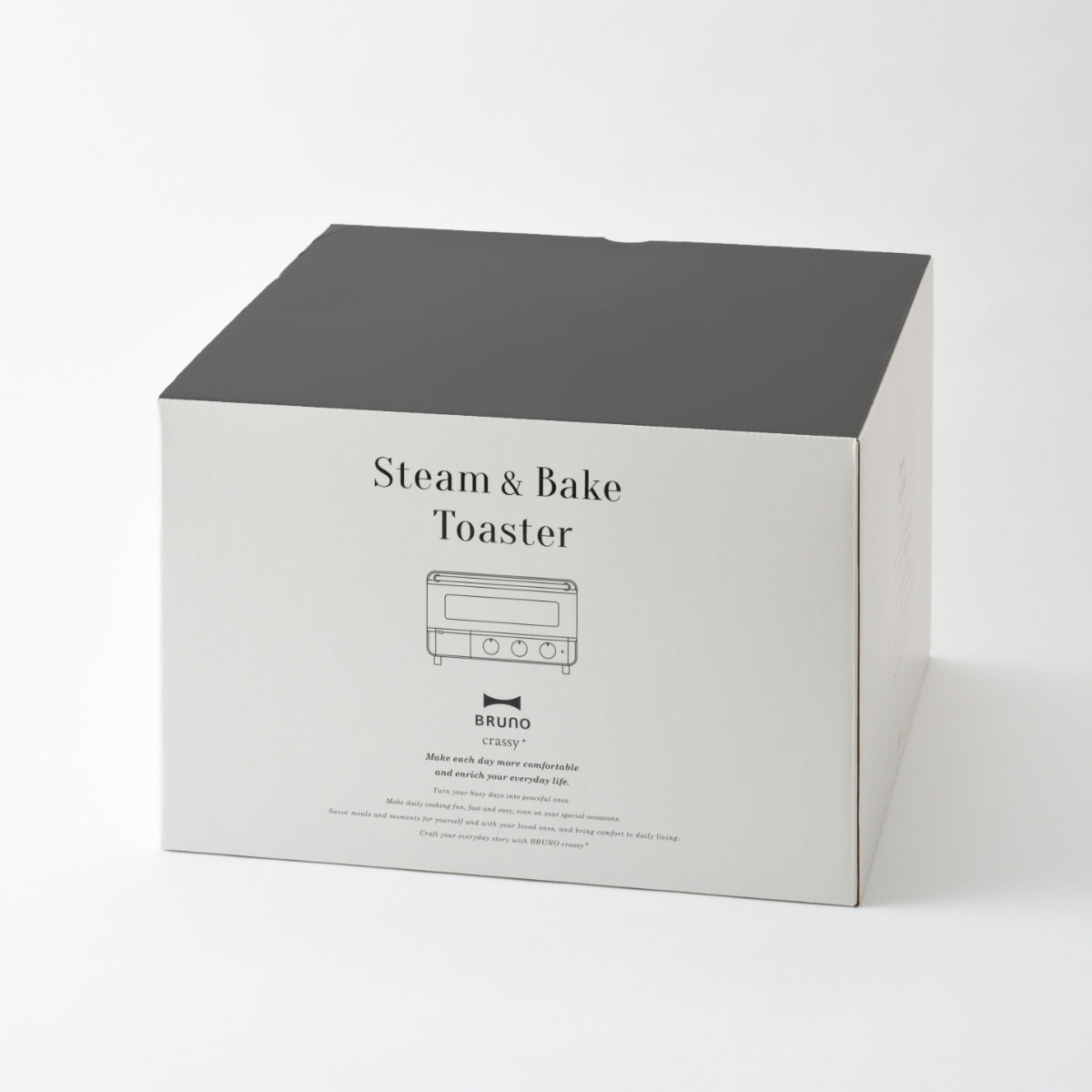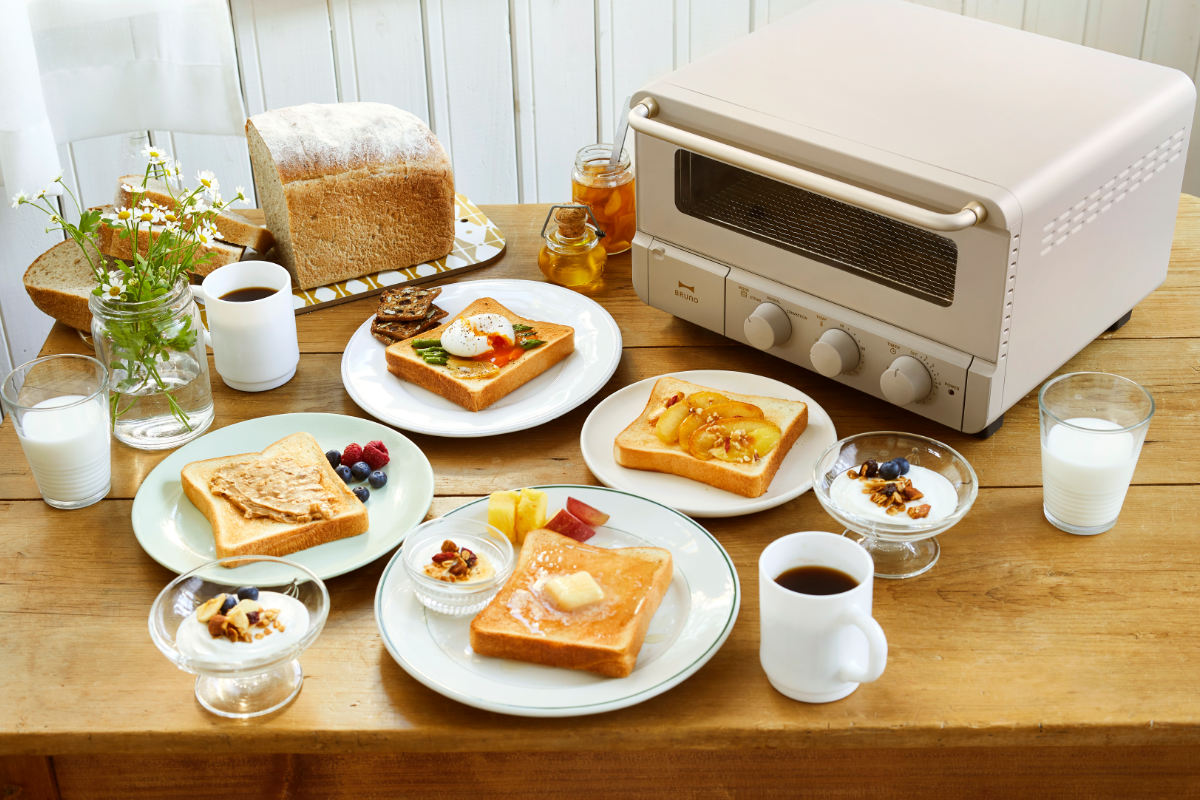 朝食のトーストや毎晩の料理が手早くおいしく仕上がる、「BRUNO crassy+」のトースターです。スタイリッシュで高級感のあるデザインが魅力的で機能性も抜群なので、いつもの朝食から特別な日のおもてなしまで、幅広いお料理の調理にお使いいただけます。料理家監修のレシピリーフレット付きです。
