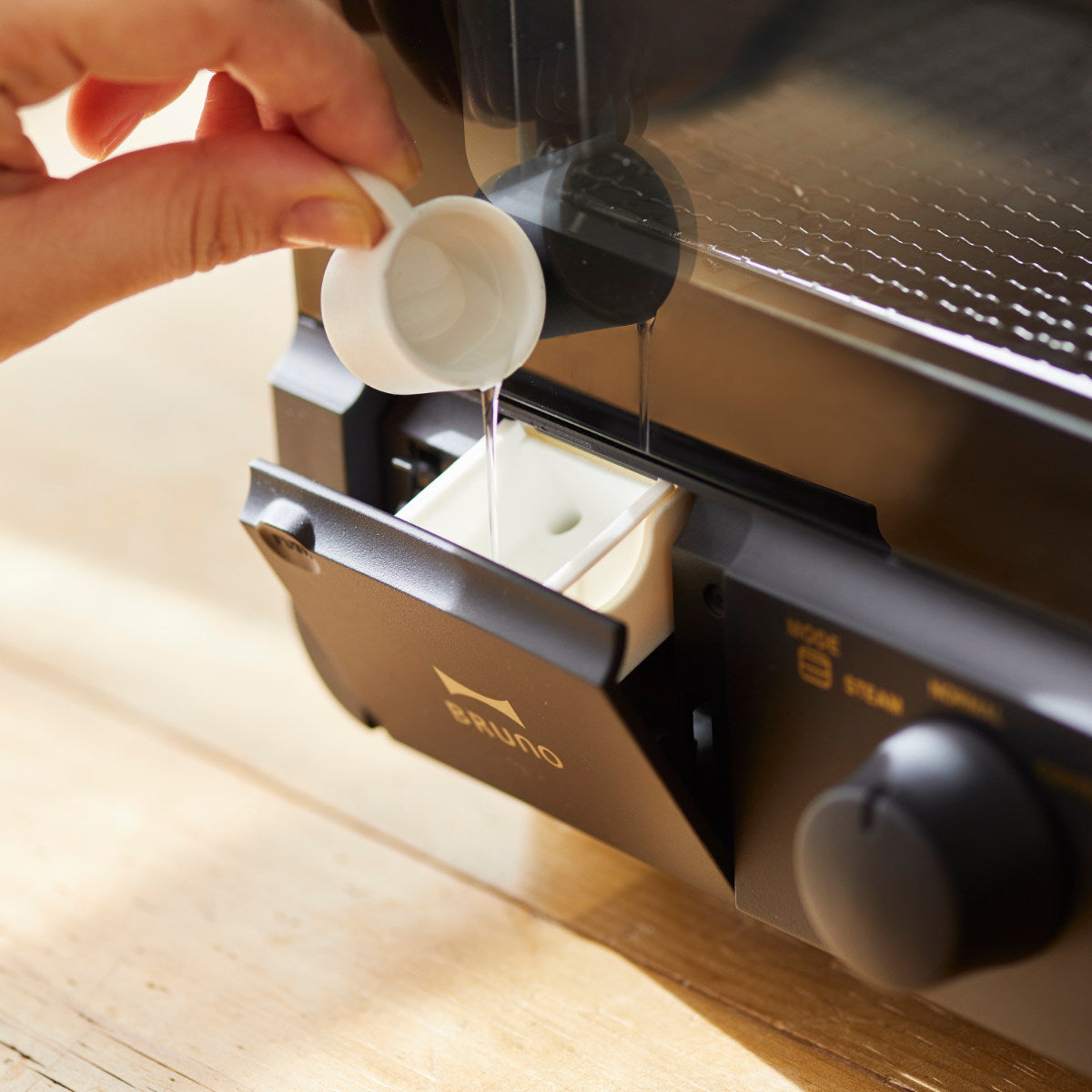 【スチームモード】水を入れて焼くだけで、いつものトーストを外はカリッと、中はもっちりふわふわな食感に焼き上げます。