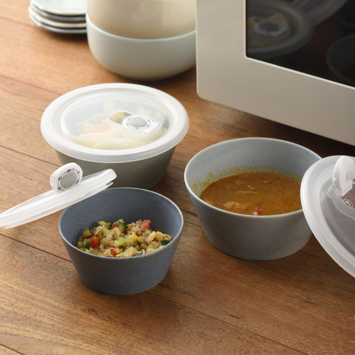 テーブルシーンを華やかに演出するマット柚薬のセラミックボウルです。保存や温めに便利な樹脂製の蓋付きで、蓋の空気弁を開けばレンジで加熱が可能です。休日に作り置きしたものも加熱してそのまま食卓に出せるので、忙しい毎日に活躍しそうです。