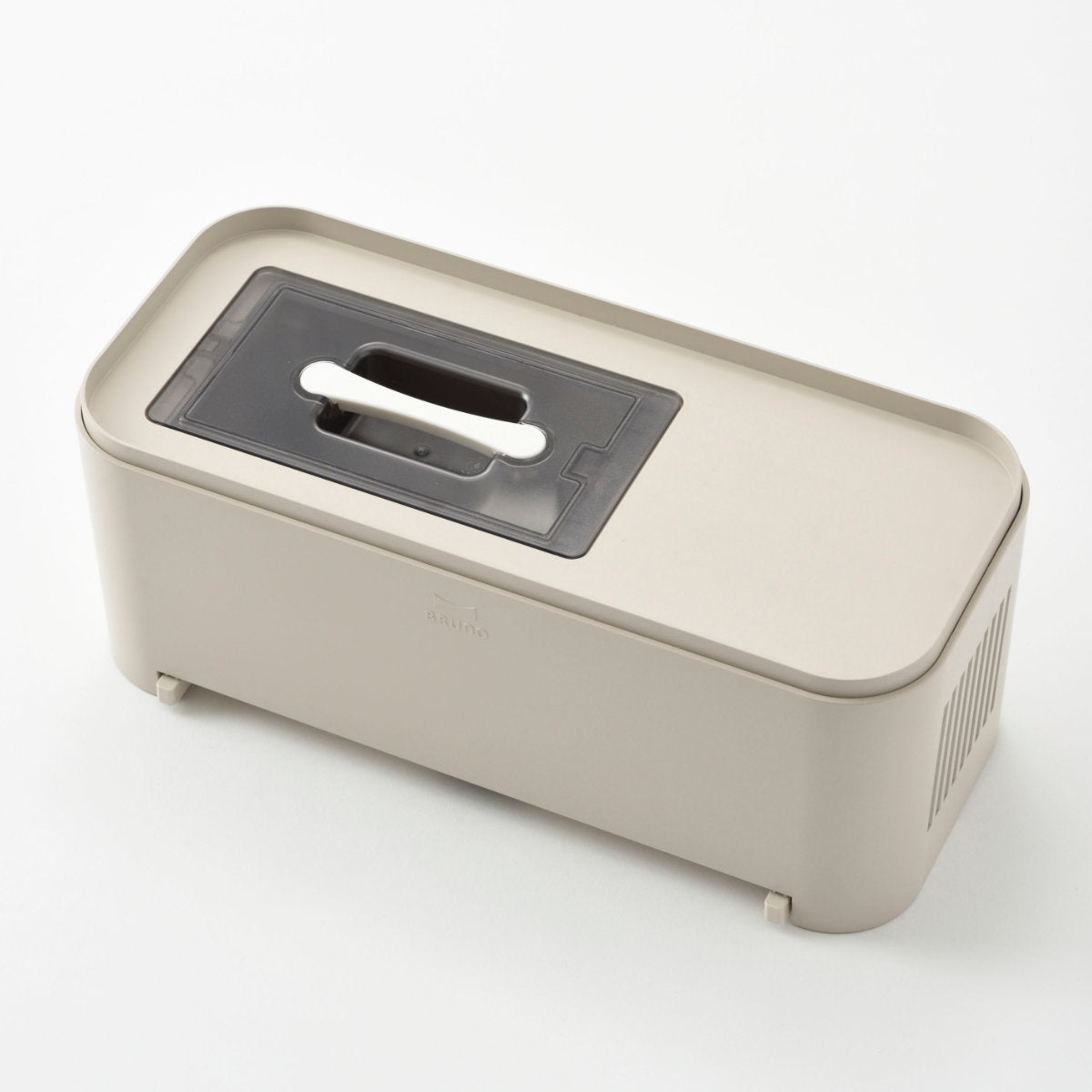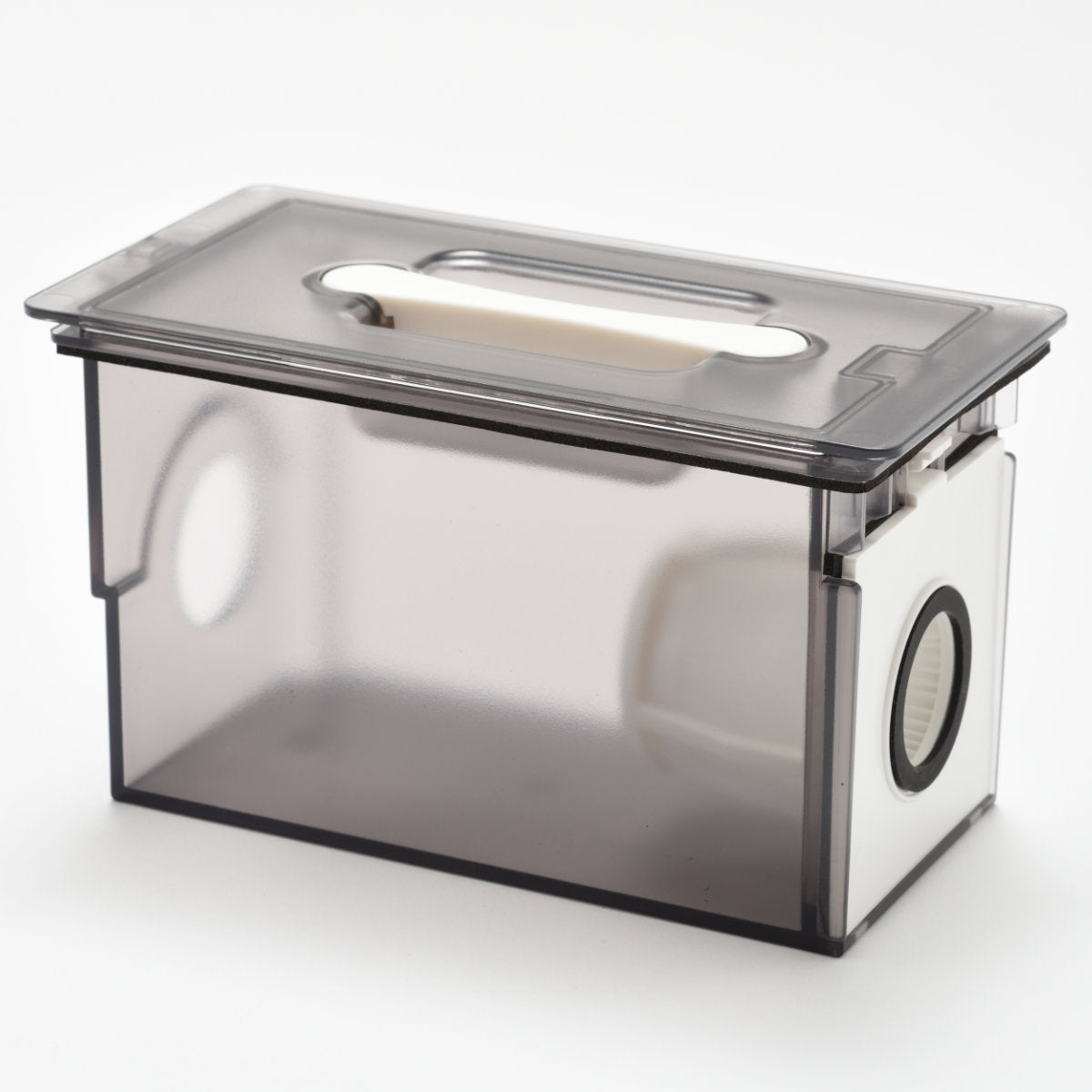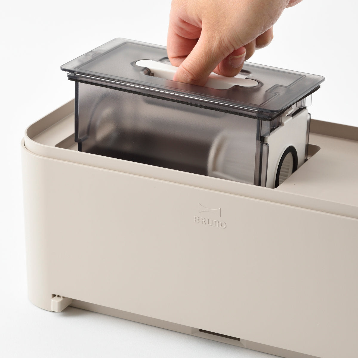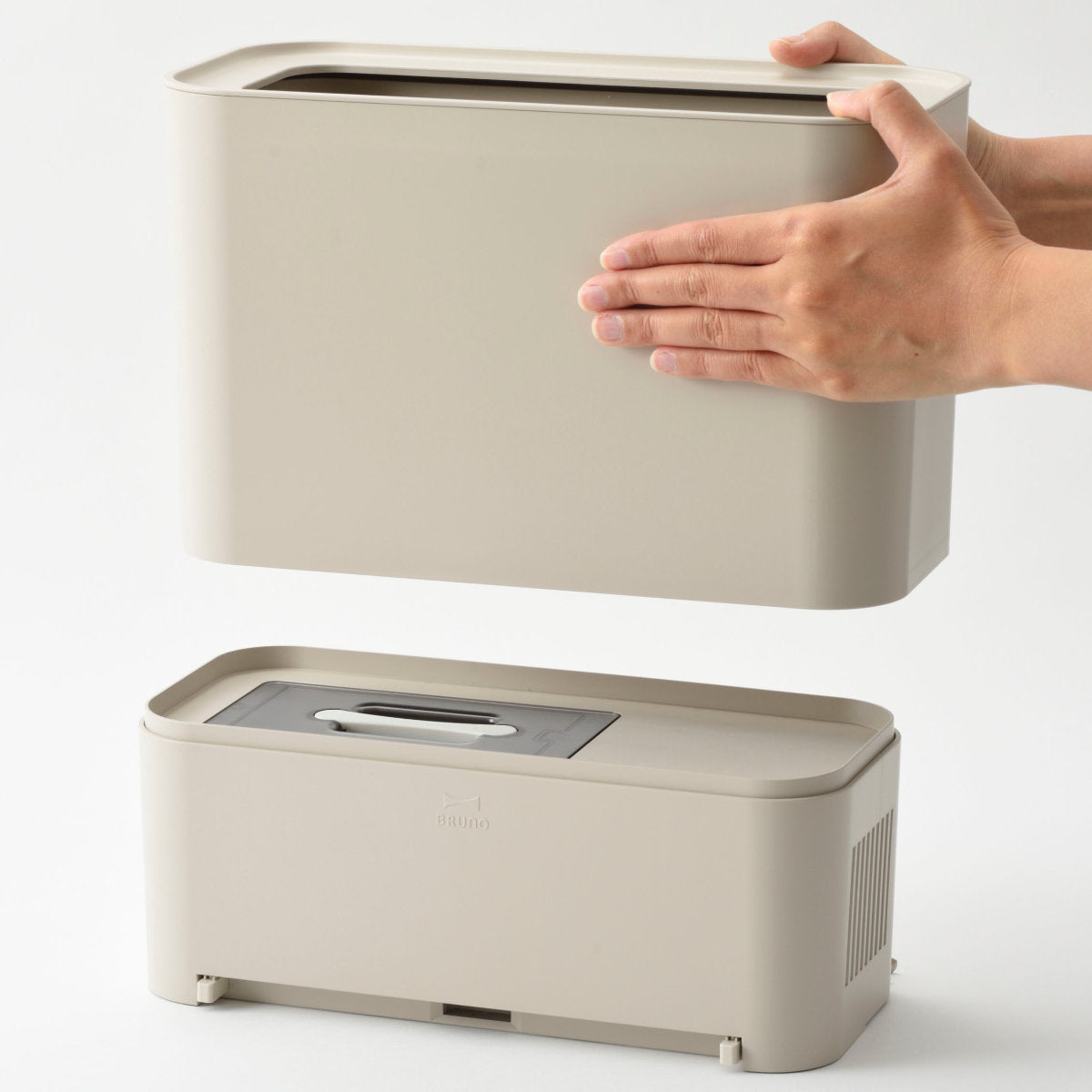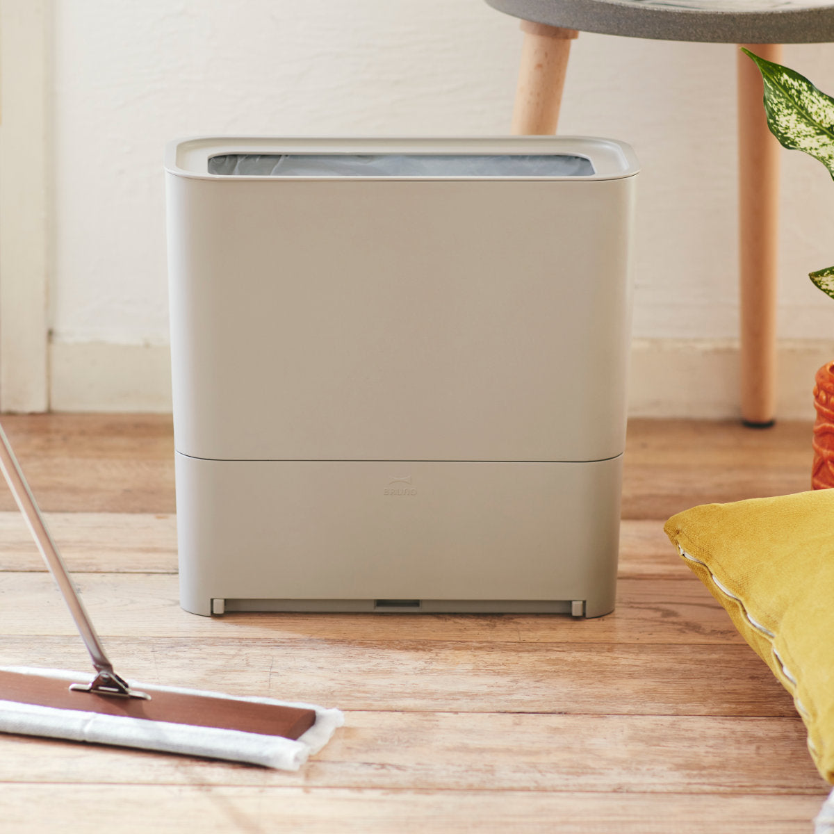 クリーナーの上の部分はゴミ箱スペースになっており、汚れた掃除シートをそのままポイっと放り込めます。ゴミ箱部分の容量は約7Lで、リビングのゴミ箱として普段使いしやすいサイズ。生活感が出にくいデザインとカラーで、出しっぱなしでも気になりません。
