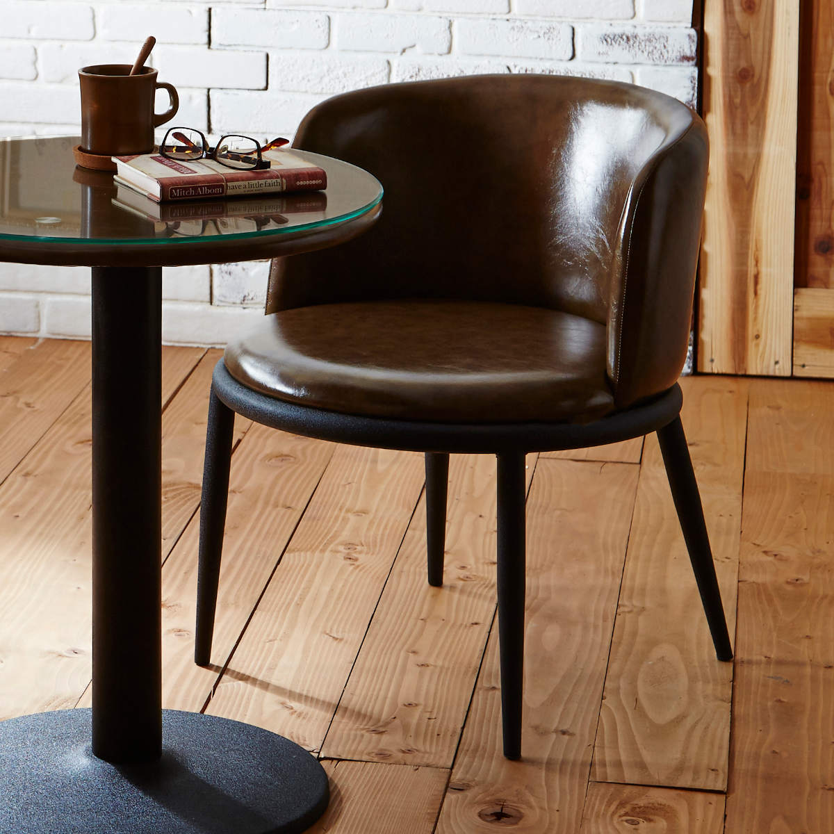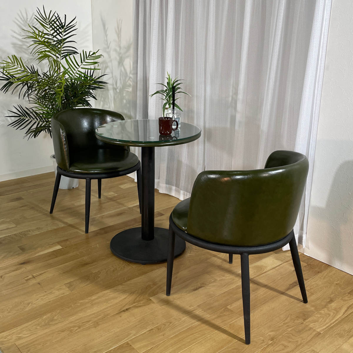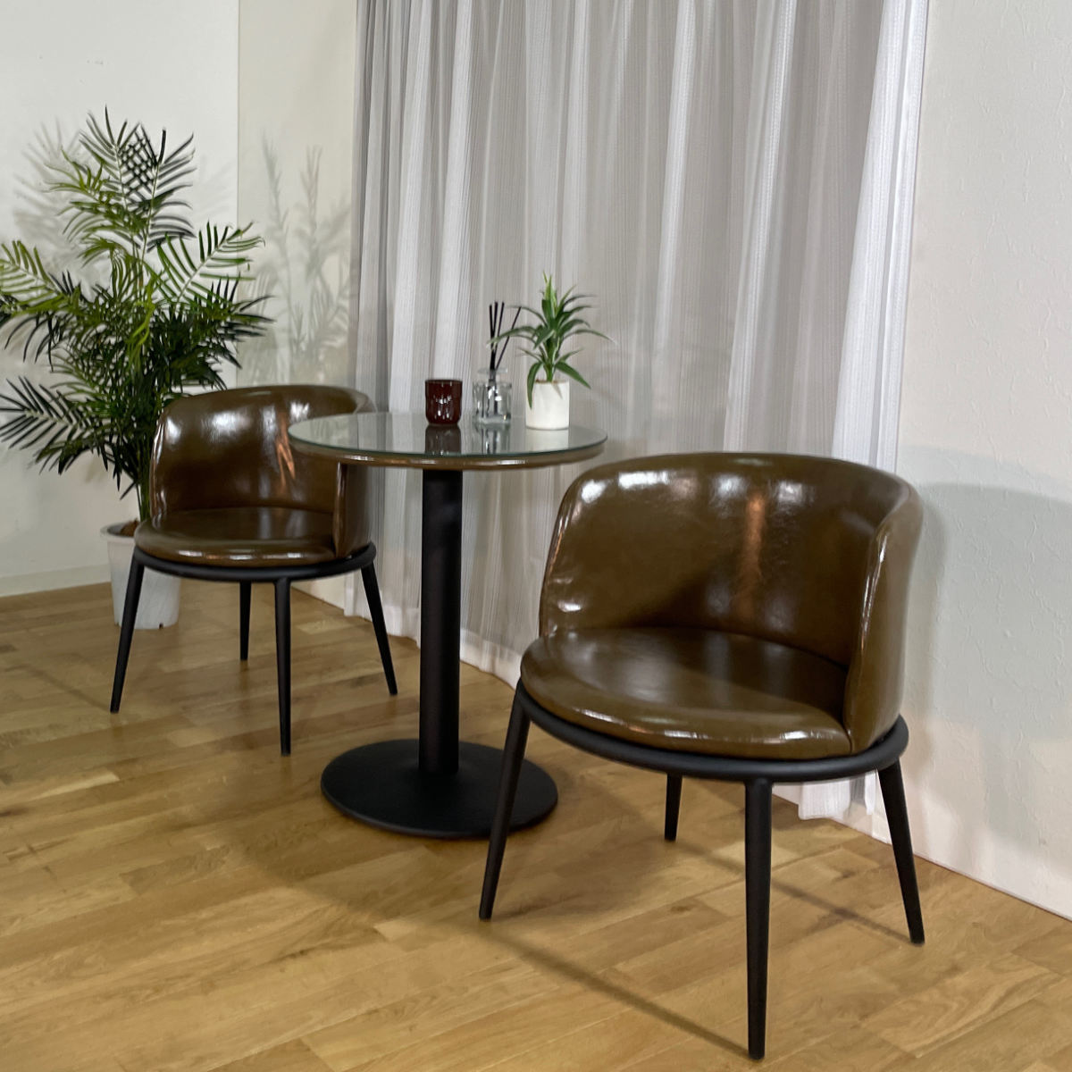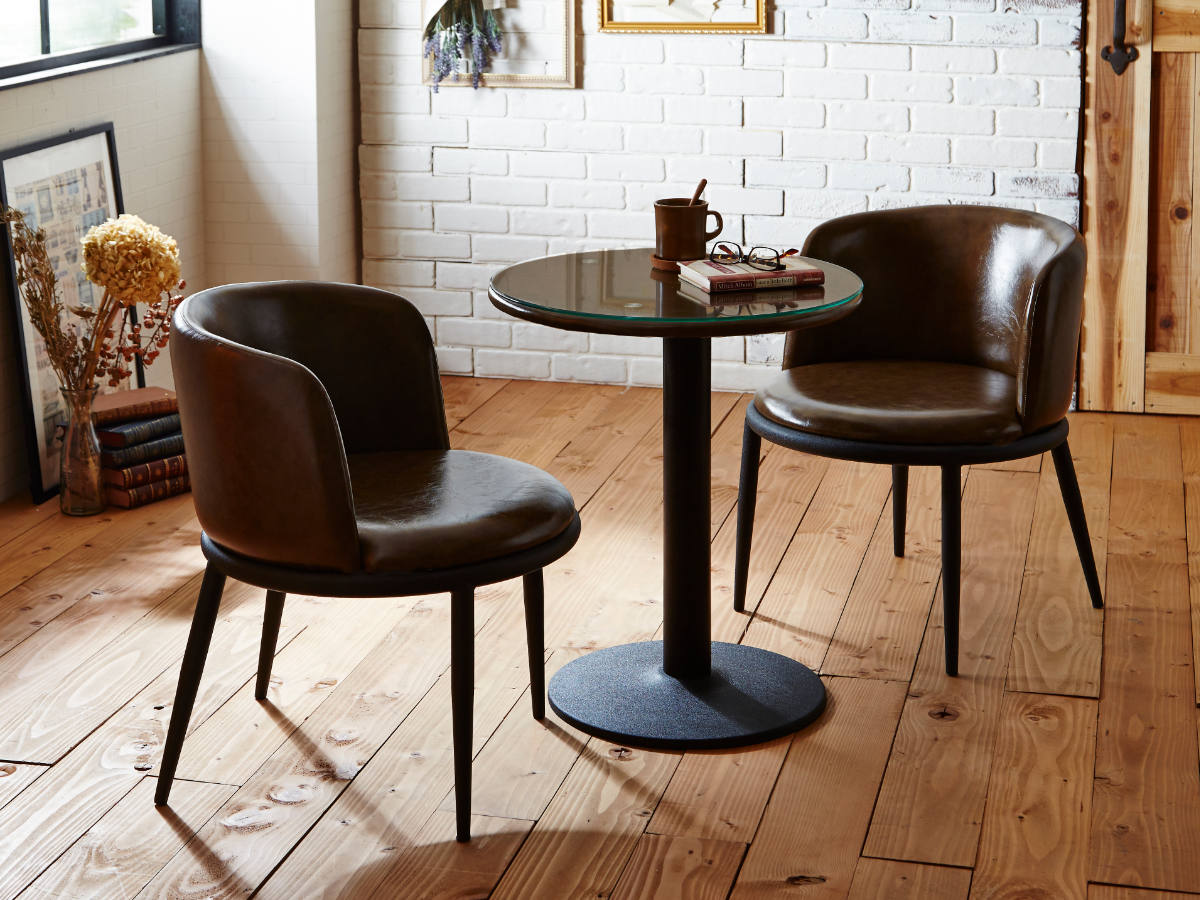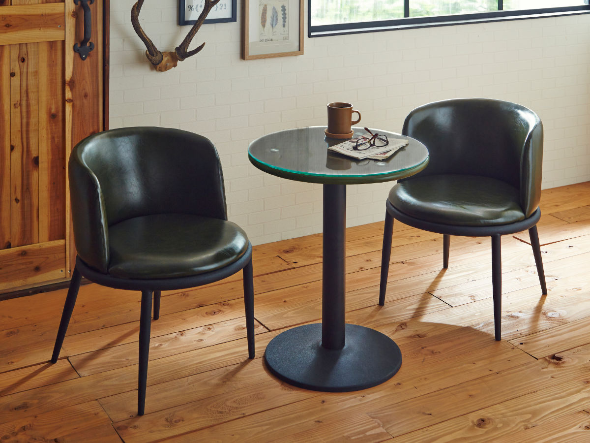 ブラックスチール脚との組み合わせがレトロな雰囲気を醸し出してくれます。細身の脚はスッキリとした印象で、圧迫感がありません。