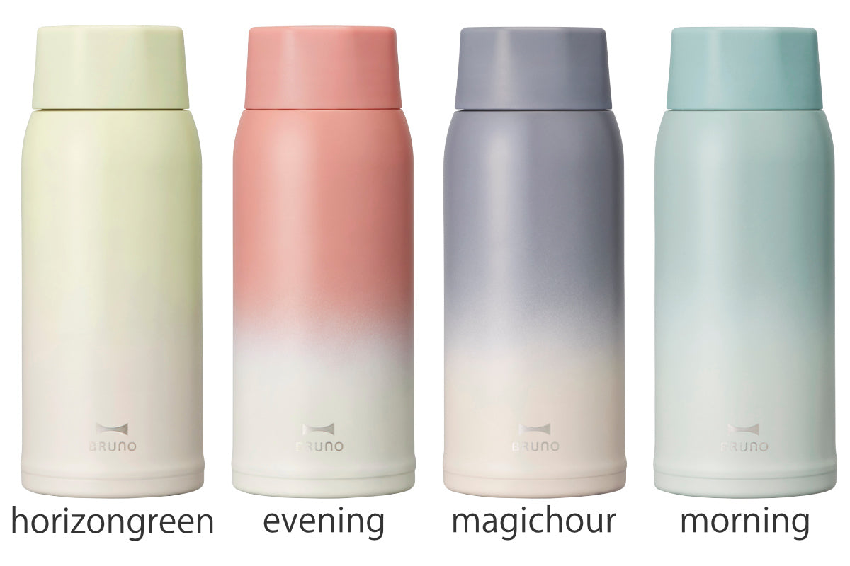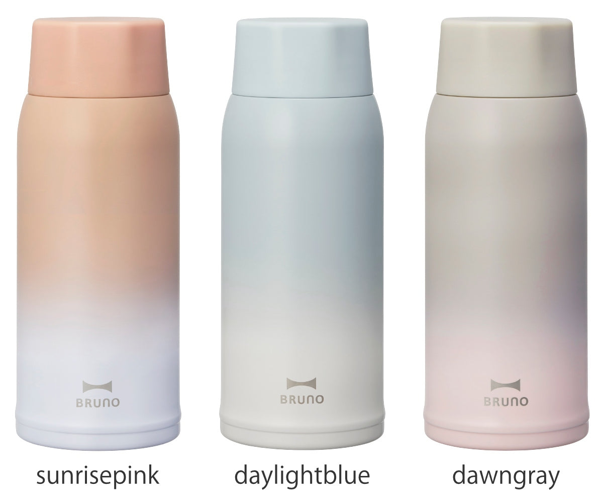 日の出や夜明けの海のワンシーンを切り取ったような幻想的なグラデーションカラーが目を引きます。「BRUNO」のロゴがワンポイントです。