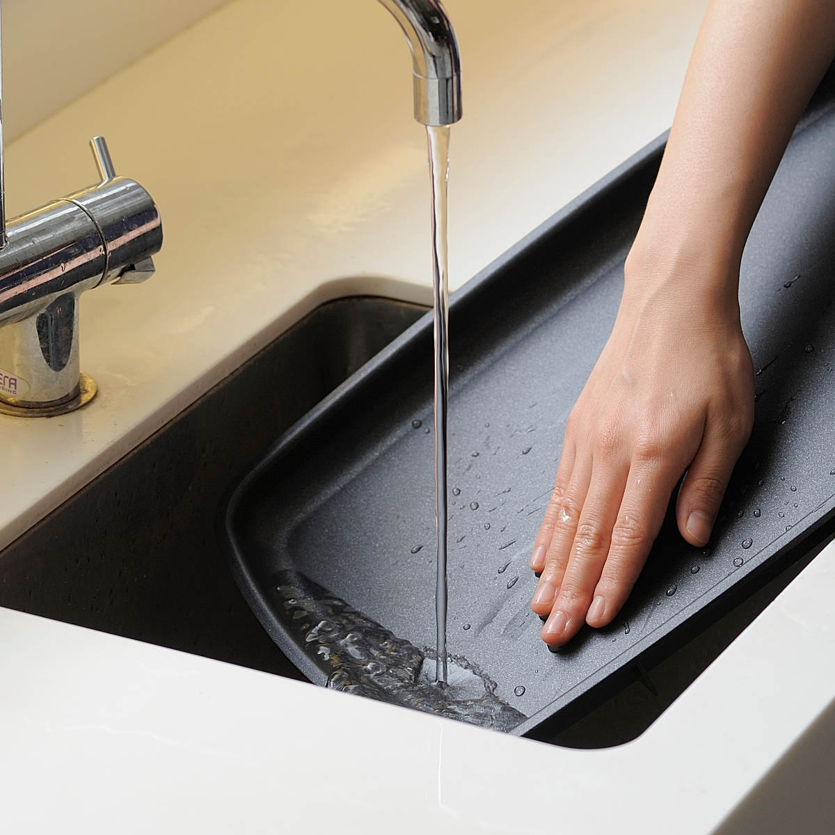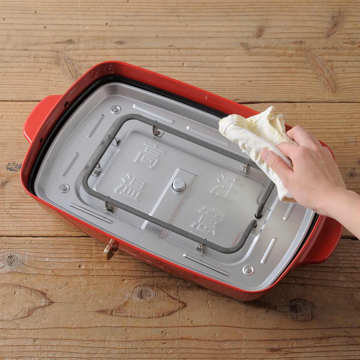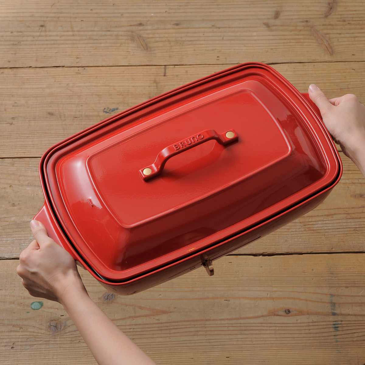 ホーロー鍋をイメージしたあたたかみのあるデザインは、インテリアや調理シーンでテーブルウエアのように食卓を彩ります。プレート、本体、フタの一体感を重視し、パッと見でホットプレートには見えない高級感を追及しました。テーブルの上に料理をそのまま出せば、盛り上がること間違いなしです。